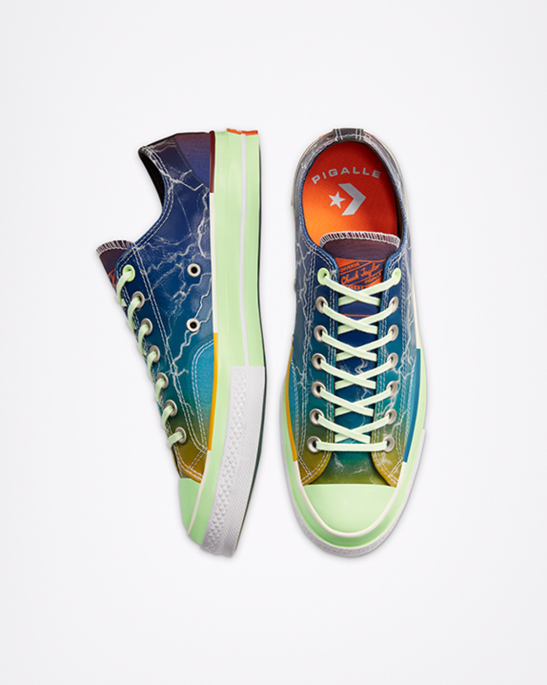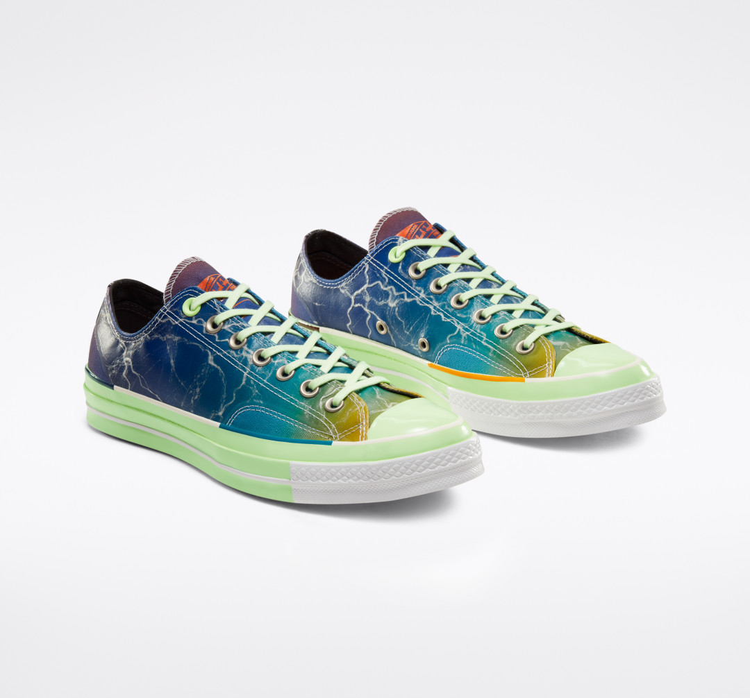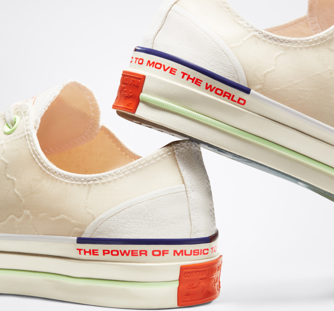 Недавно американский бренд также выпустил коллаборацию с французской маркой Pigalle, в которую вошли две модели на базе низких «чаков». Кеды украсили разрядами молний, а на подошве написали девиз Стефана Ашпула «The power of music to move the world», который верил в то, что музыка может менять людей и мир вокруг. Заказать лимитированную пару обуви в Петербург можно на официальном сайте Converse, цена – 10 200 рублей.