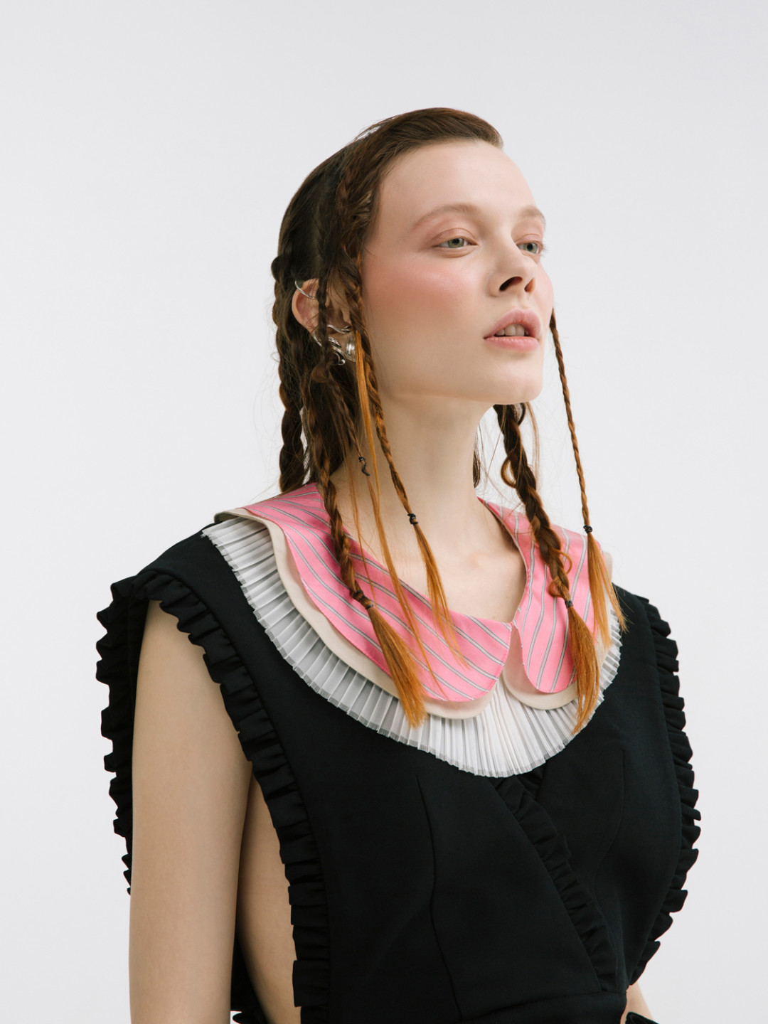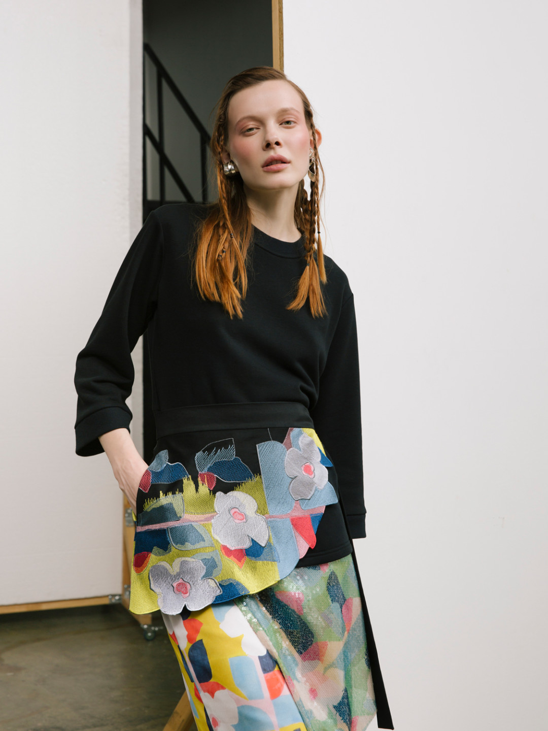 Образы, словно вдохновленные школой и детством, дополнили фартуки и накладные воротники – мечта наших мам в детстве. Ткани с советскими принтами – крупные розовые цветы, мелкие ромашки на желтом фоне – разбавили монохромные образы, а лаконичные силуэты сделали вещи универсальными и гармоничными для любого гардероба. Коллекцию уже скоро можно будет найти в концепт-сторе Ola Ola на Восстания, 1.
