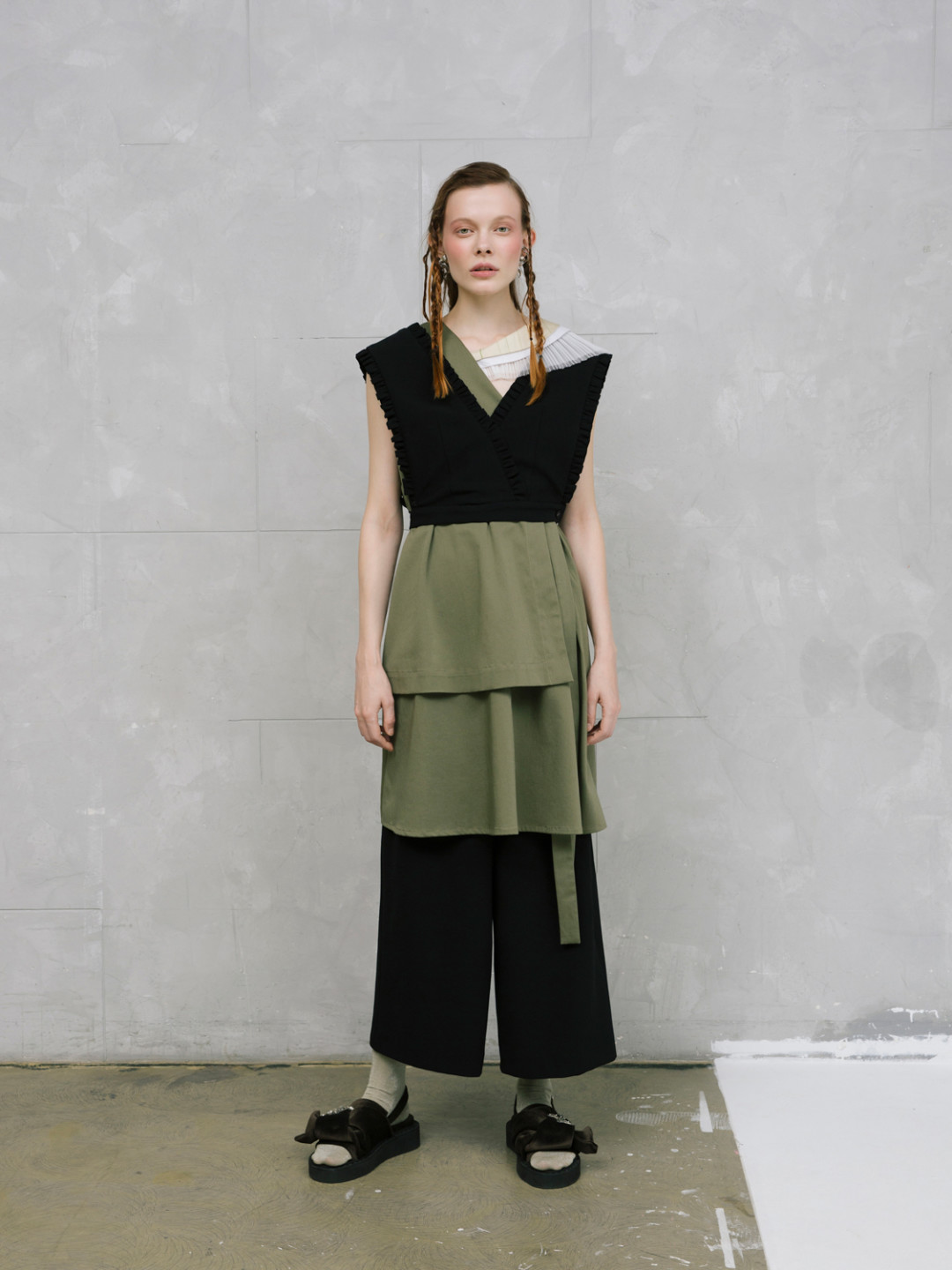Петербургский бренд Ola Ola выпустил коллекцию весна-лето 2020, в которую вошли брюки-кюлоты, платья с оборками, жилеты с накладными карманами и тренчи с бахромой и пайетками.