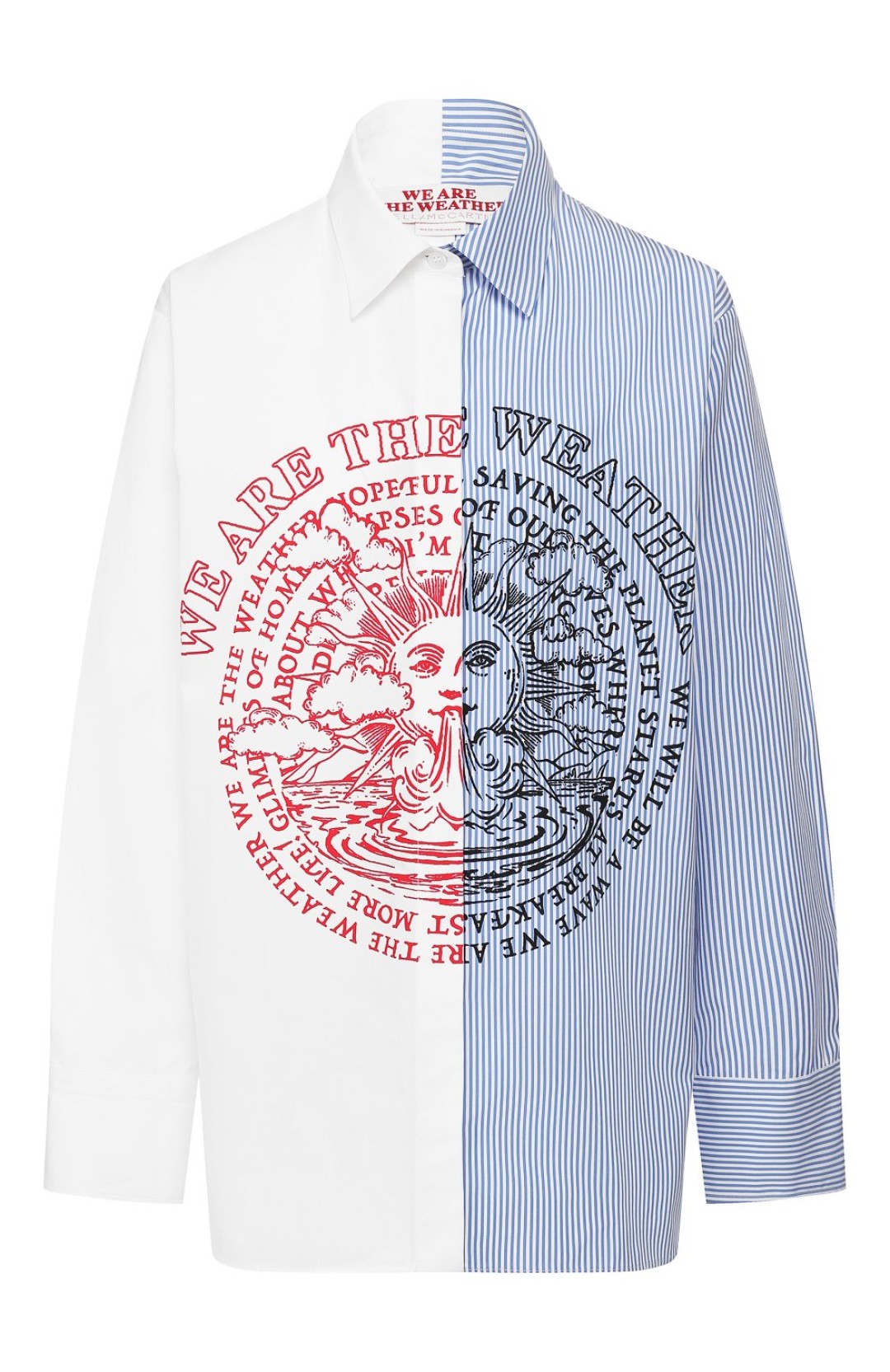 В капсулу Stella McCartney вошли майки с надписью «We are the weather», рубашки и свитеры с фольклорным принтом в виде солнца и свитшоты с вышитым словом «SOS», где «O» – это планета. В рамках запуска бренд снял рекламную кампанию, снимки которой похожи на кадры из «Солнцестояния» Ари Астера и показал лукбук коллекции.