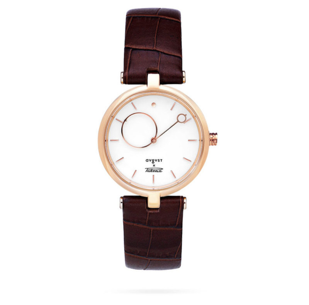 Петербургский часовой завод «Ракета» сделал коллаборацию с ювелирным брендом Avgvst. Капсула посвящена профессору математики Софье Ковалевской. На задней крышке часов по-французски написано: «Говори, что знаешь, делай, что должен, и будет что будет!» — это часть фразы, которой женщина придавала особое значение.
