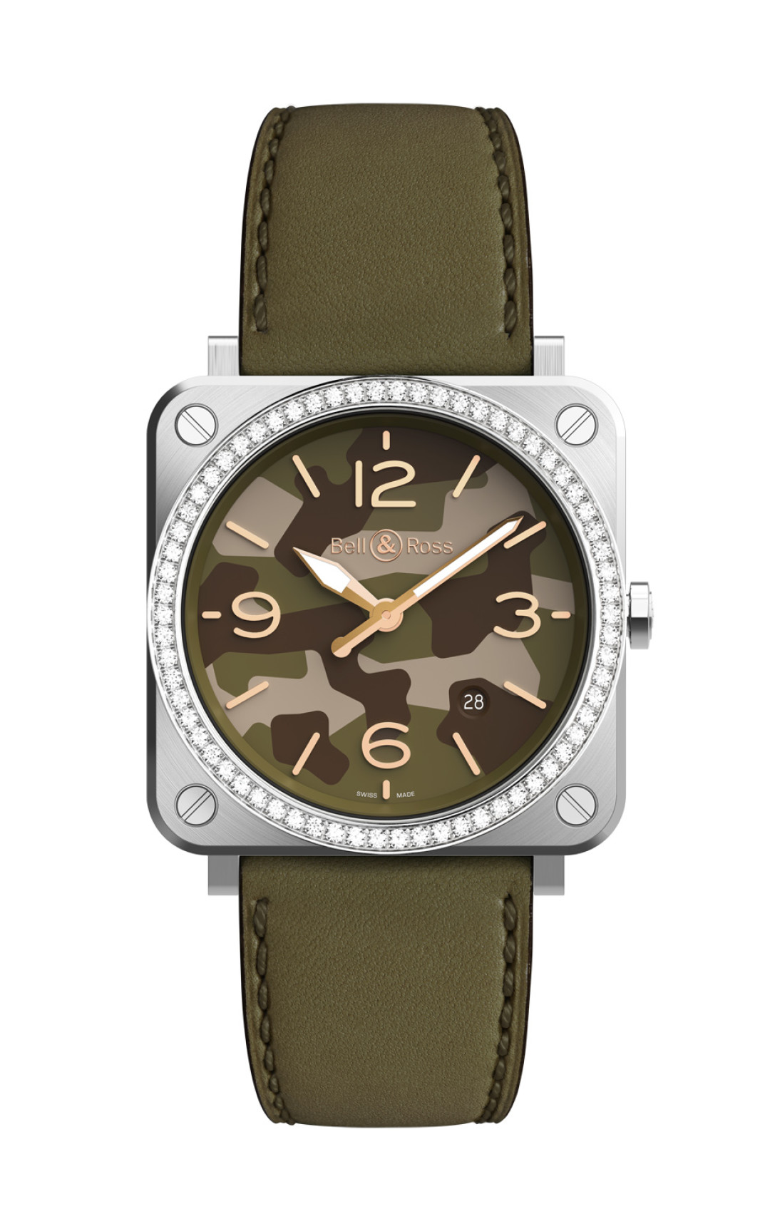 Как альпиец, заброшенный в джунгли, камуфляжный трехстрелочник в сатинированном стальном корпусе с бриллиантами абсолютно уверен в себе. Вместо швейцарского ножика у него армейский бэкграунд и безотказный кварцевый механизм.
