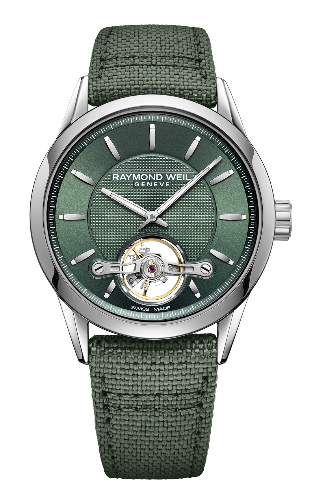 «Парижские гвозди» на циферблате нового Freelancer бурно зазеленели, а индексы остались ярко-серебристыми. Открытое колесо баланса с мостом открывает обзор на движение калибра RW1212.