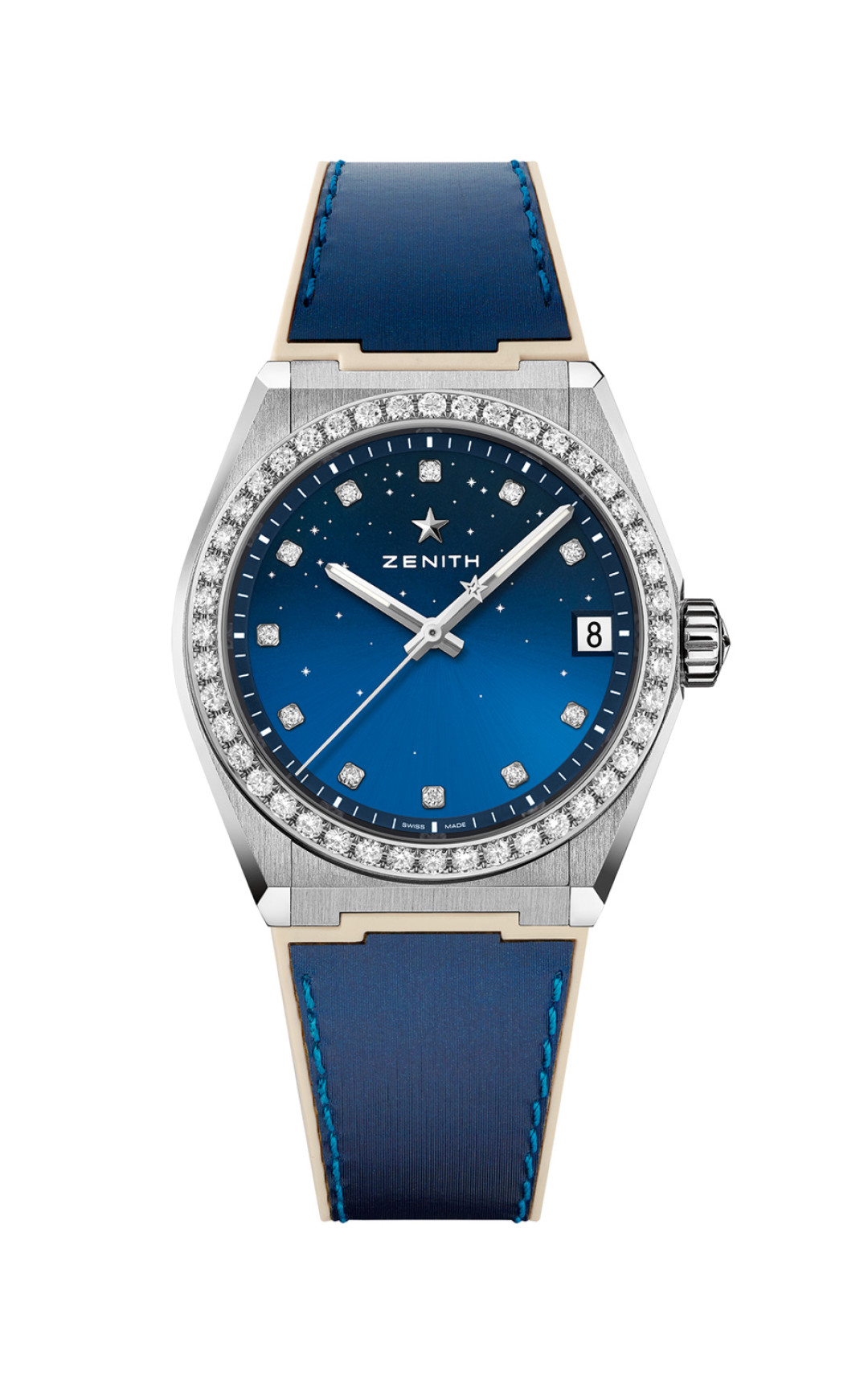 Для первых в своем портфолио исключительно женских часов мануфактура Zenith собрала лучшее: в украшенный 44 бриллиантами по безелю стальной корпус встроен точнейший механизм Elite 670 SK с запасом хода в двое суток. Еще 11 драгоценных камней рассыпаны по градиентному циферблату — черному, синему или предрассветно-перламутровому. Угадать, в какое созвездие они складываются, предлагаем по самому яркому пульсару под индексом «12 часов».