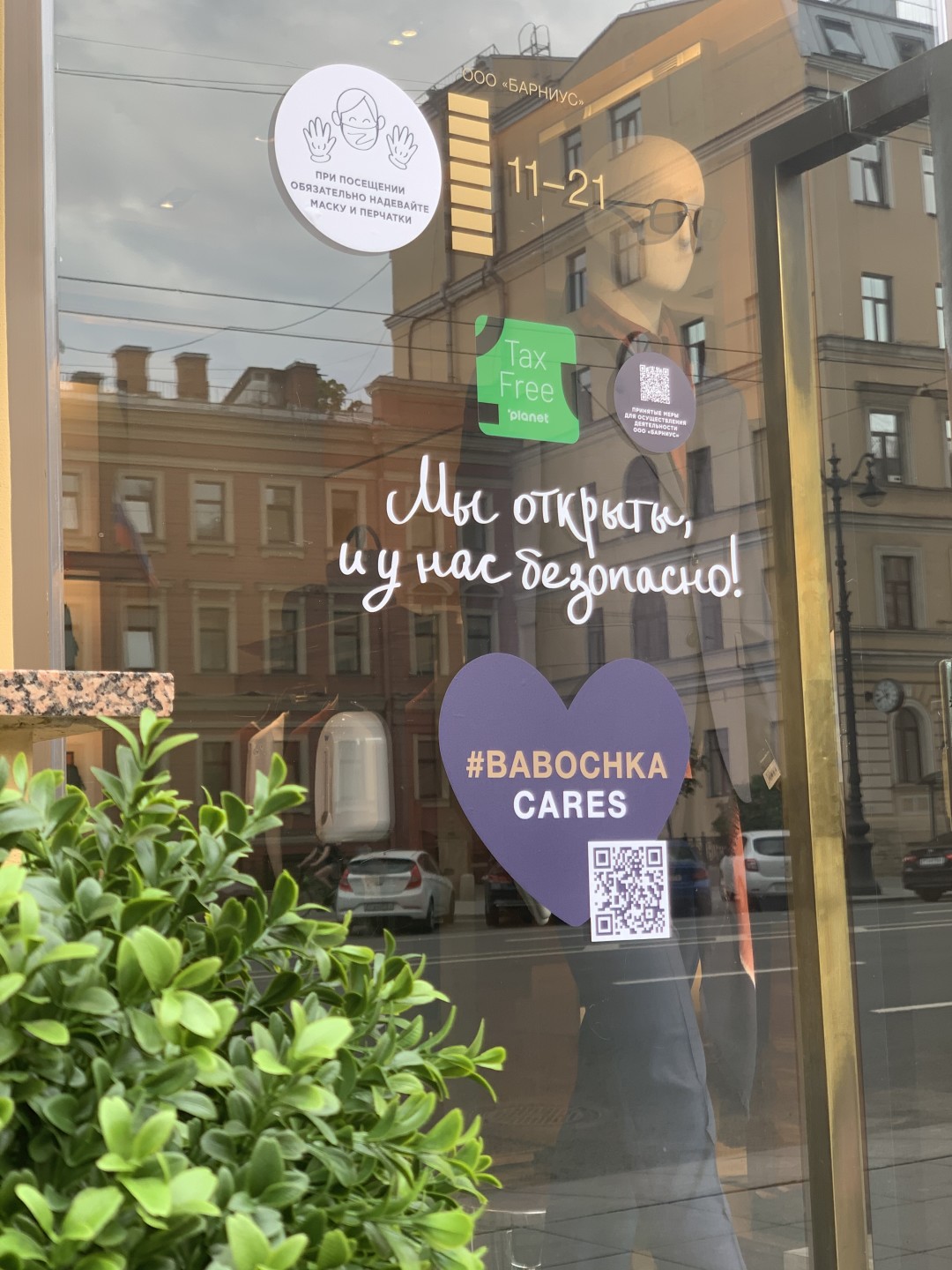 После отмены в Петербурге ряда ограничений открылась сеть бутиков Babochka, но с соблюдением всех рекомендованных Роспотребнадзором мер по защите сотрудников и гостей. Так, везде в магазинах установлены антисептики, предлагаются одноразовые маски и перчатки, кассовые зоны оборудованы защитными экранами, весь персонал обеспечен защитными экранами, масками и перчатками.