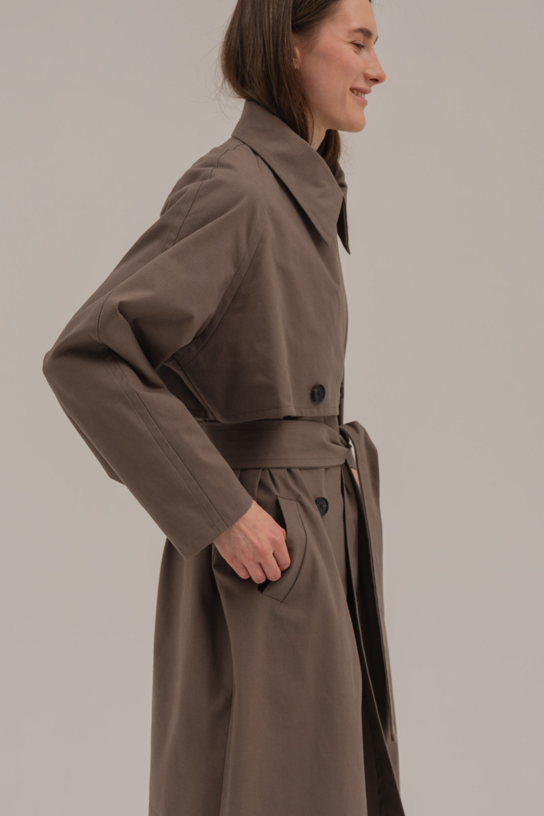 Начинала марка с создания верхней одежды – пуховиков премиум-сегмента, но переосмыслила свое позиционирование. Основательница FLG studio Дина Малышева обратилась к философии вневременной эстетики и простым формам, поменяв не только ДНК-марки, но и ее ассортимент. Сейчас он состоит из кожаных плащей, тренчей классических силуэтов с подстежками из гусиного пуха, платьев из шелка, костюмов из органзы, сумок и обуви. Вещи из коллекции 2020 выходят дропами каждые две недели.