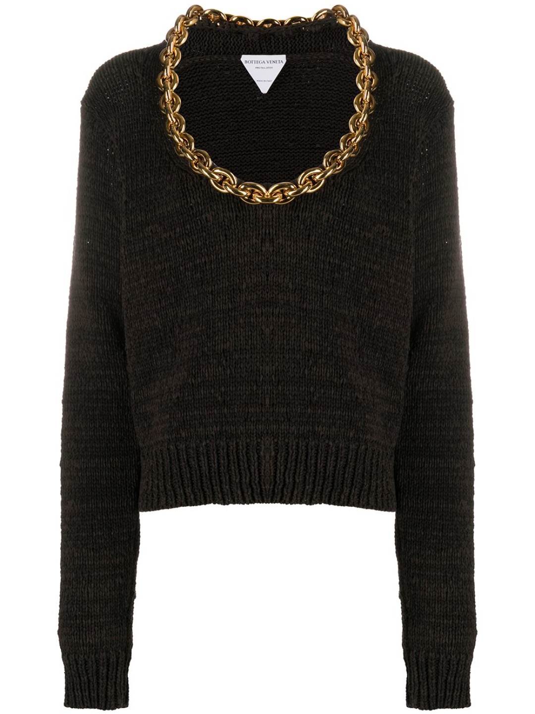 Амбассадорами цепей можно смело назвать дизайнеров Дэниела Ли и Джонатана Андерсона. У JW Anderson массивные объемные цепи украшают сумки, заменяют пряжки на мюлях и выступают самостоятельно, став основой для сережек. Bottega Veneta же пошли дальше. Бренд демонстрирует не только ремни и украшения в виде цепей, но и смело добавляет их к платьям и свитерам. Даже одна из самых популярных вещей 2019 года — сумка The Pouch, обзавелась ручкой-цепью.