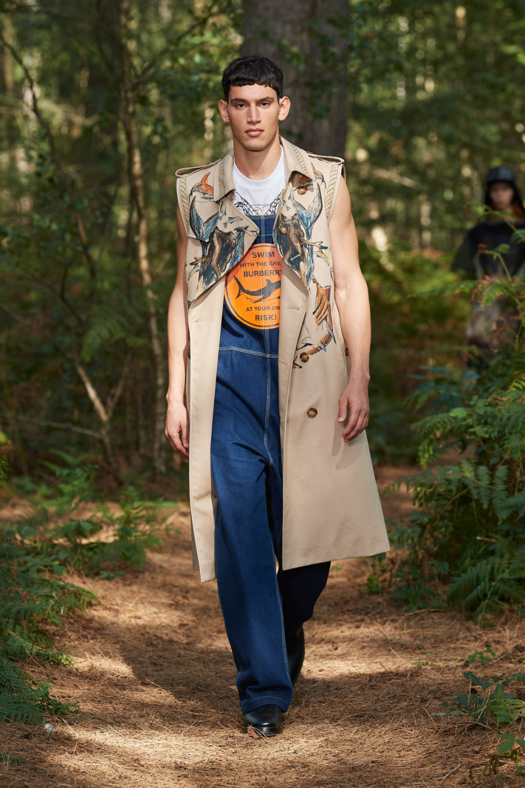 Креативный директор Burberry Риккардо Тиши объединил моду, арт и музыку в одном показе. Над ним он работал вместе с немецкой художницей, хореографом, обладательницей главной награды Венецианской биеннале 2017 года Анной Имхоф, которая поставила танцевальный перформанс, сопровождавший все шоу. Кроме того, в показе приняли участие американская певица Эрика Баду, певица Розалия, музыкант Стив Лейси и модель Белла Хадид.