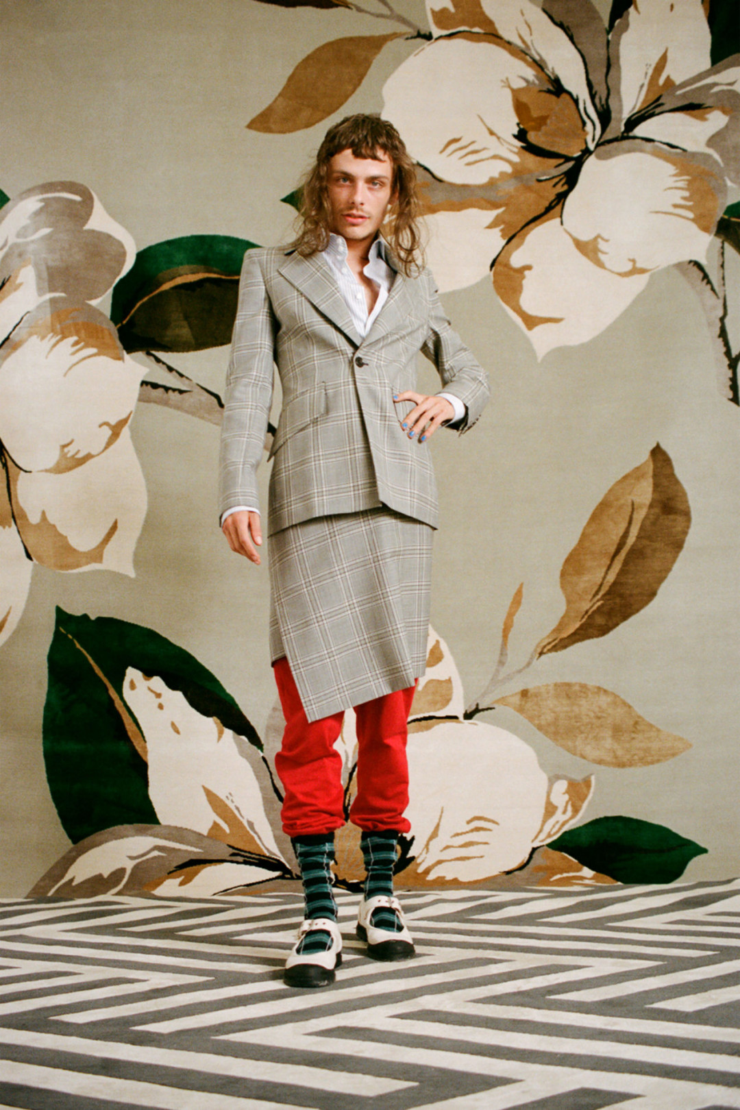 Основательница и креативный директор бренда Вивьен Вествуд продолжает бороться как с сезонностью коллекций, так и с их гендерным разделением. В подтверждение — выпуск одной коллекции в год и вещи, которые по мнению дизайнера подходят и мужчинам, и женщинам. Среди них платья, костюмы, блузы, юбки с активными, яркими принтами и элементами эстетики бродячего театра.