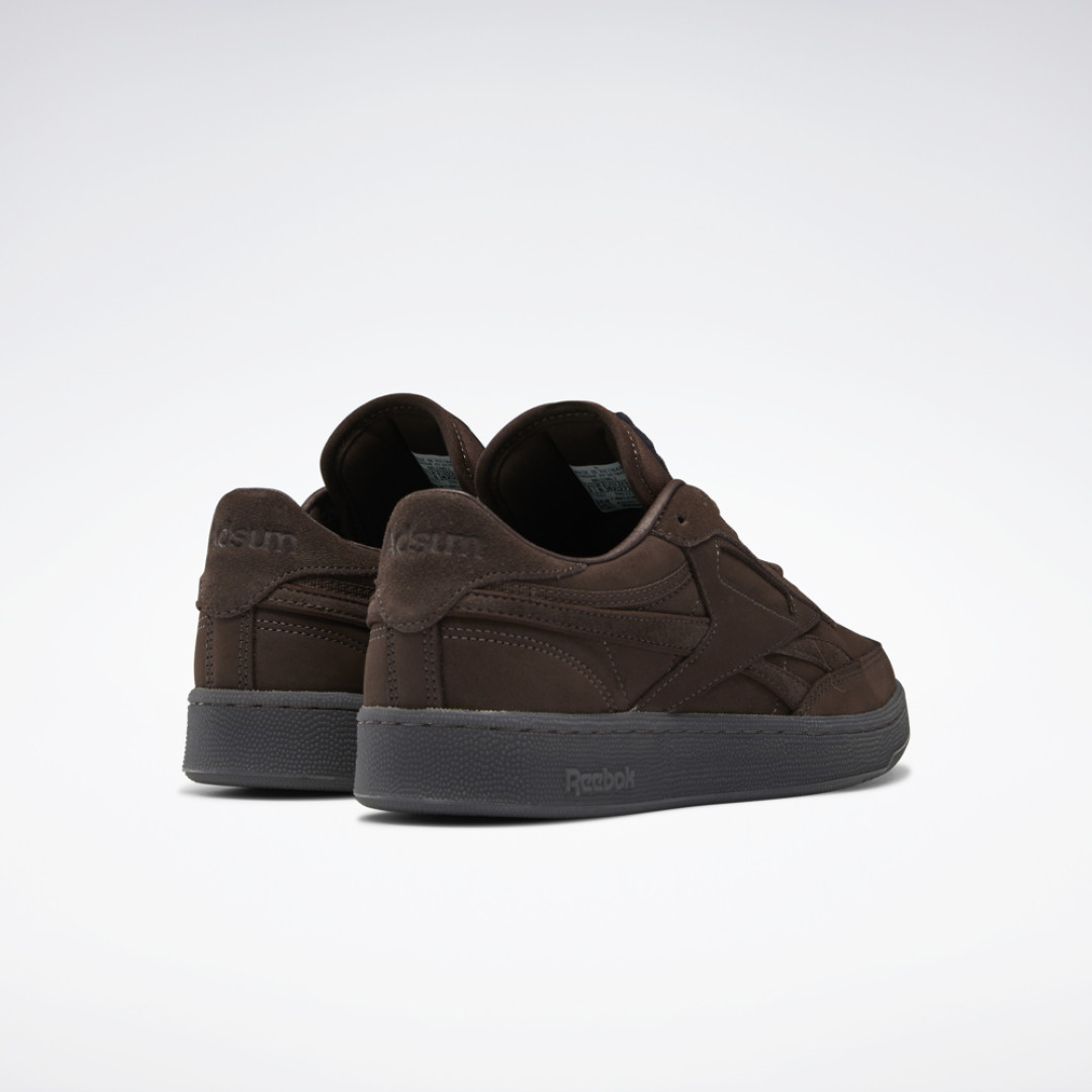 Новая модель напоминает и о прошлой коллаборации Adsum и Reebok — кроссовках Pyro. К ностальгическим элементам можно отнести замшевые детали на пятке и внутренний брендинг на стельке. Кроме того, Reebok Club C Revenge Plus декорированы кастомизированным перфорированным узором на медиальной стороне кроссовка и обладают дополнительными съемными стельками.