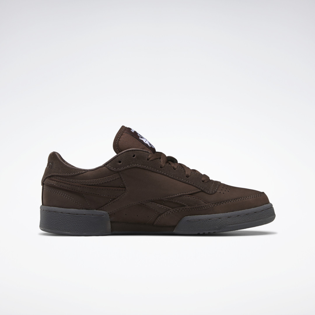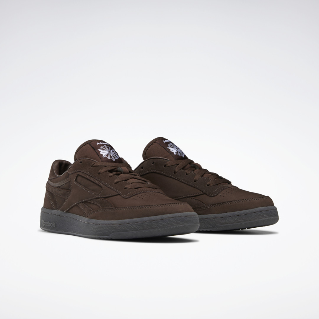 Американский бренд Adsum и Reebok представили обновленную модель легендарных Club C, которые были созданы еще в 80-х годах. Тогда они задумывались ка теннисная обувь с соответствующим дизайном. Adsum проявили уважение к легенде и сохранили минималистичность и монохромность кроссовок. Итог — Reebok Club C Revenge Plus породного коричневого цвета с полупрозрачной резиновой подошвой, отсылающей к обуви 70-х и 80-х.