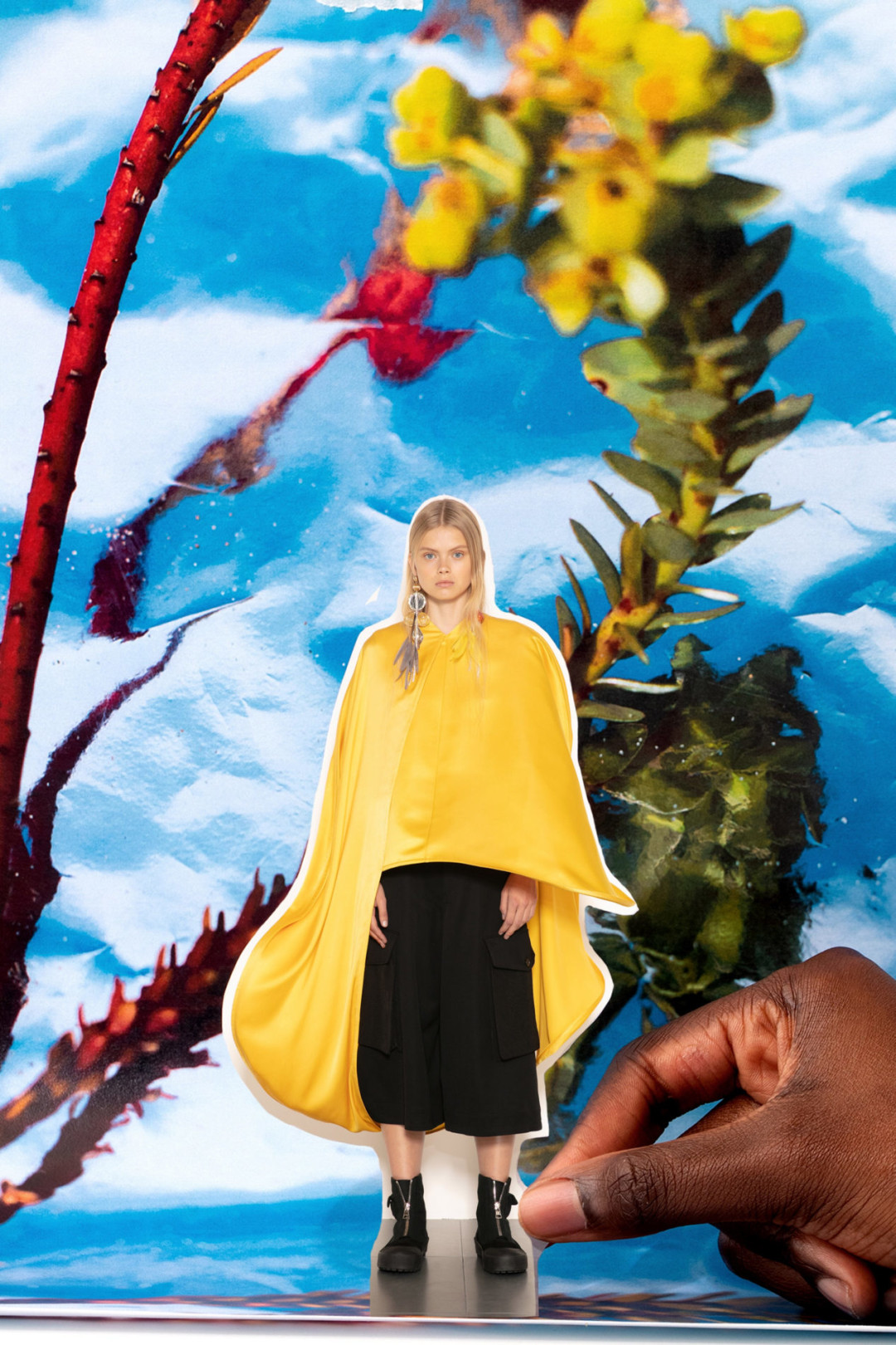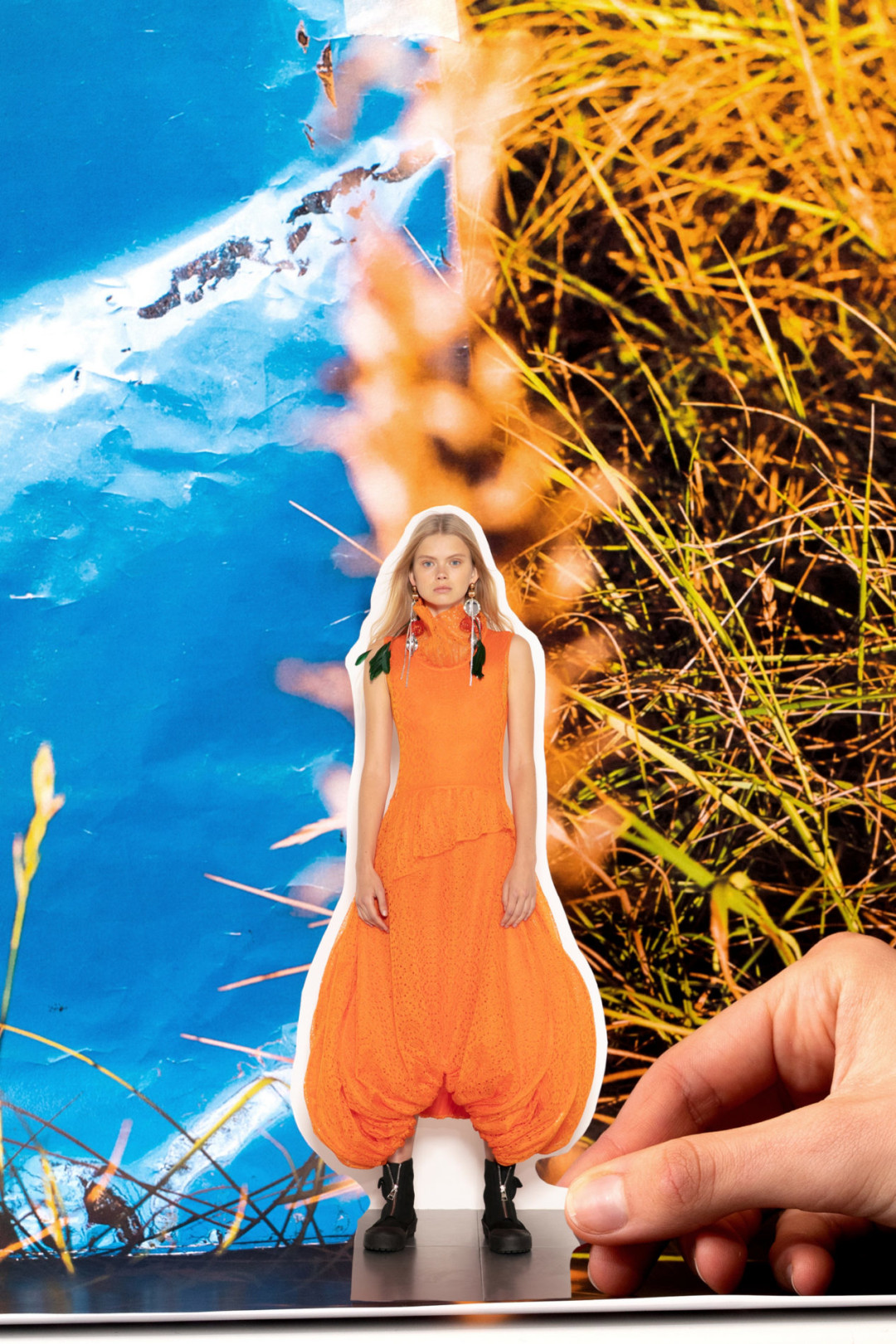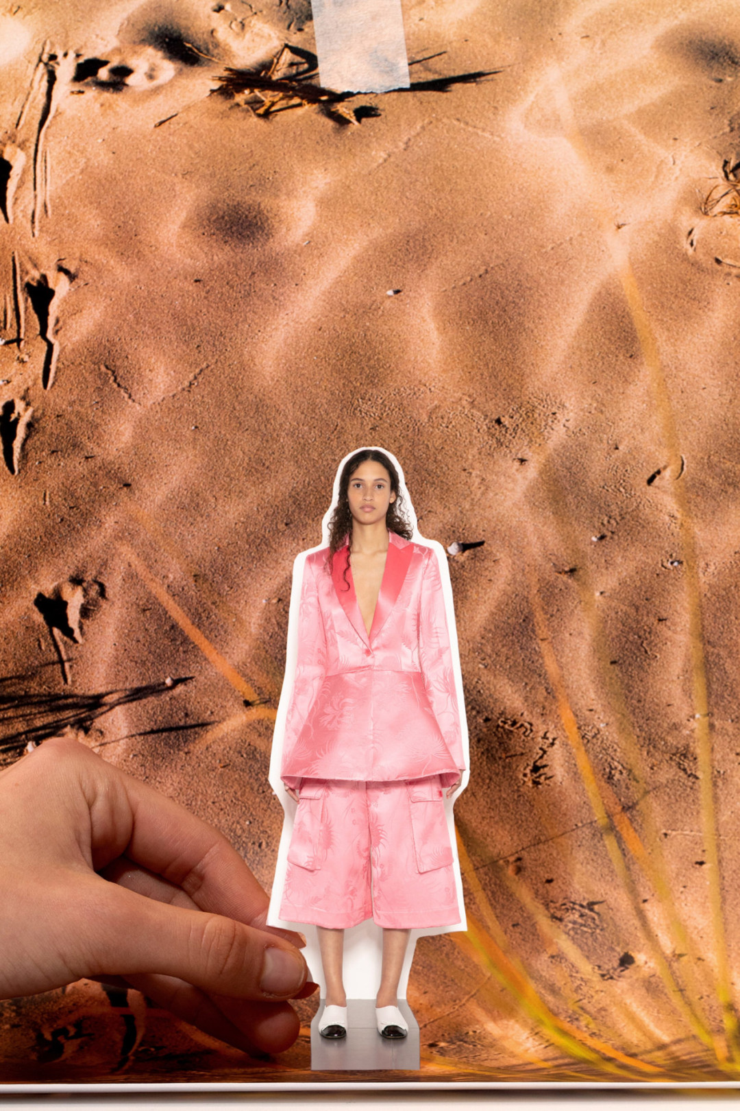 Джонатан Андерсон продолжает изобретать новые форматы демонстрации коллекций. На мужской Неделе моды в июле вместо моделей он использовал манекены, у которых лица заменили маски авторства художников Пола Англада и Бертжана Пота, сейчас — создал лукбук, состоящий из вырезанных из бумаги миниатюрных фигурок. На фигурках — образы коллекции весна-лето 2021.