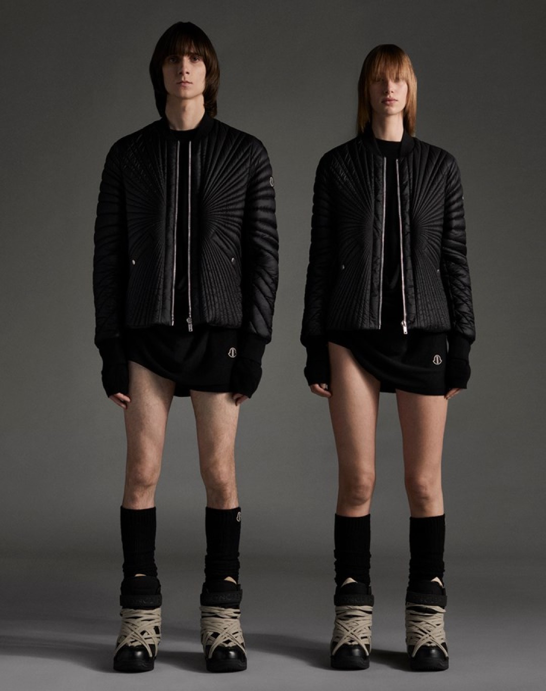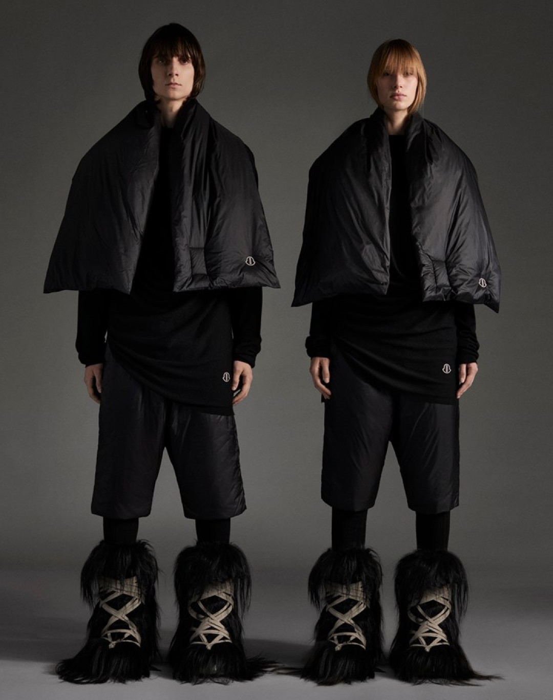 В совместную коллекцию Rick Owens и Moncler вошли пуховые куртки, жилеты, шарфы и другие предметы одежды и аксессуары, украшенные видоизмененным Риком Оуэнсом логотипом Moncler. Лейтмотив коллаборации — фирменная для дизайнера эстетика мрачного минимализма.