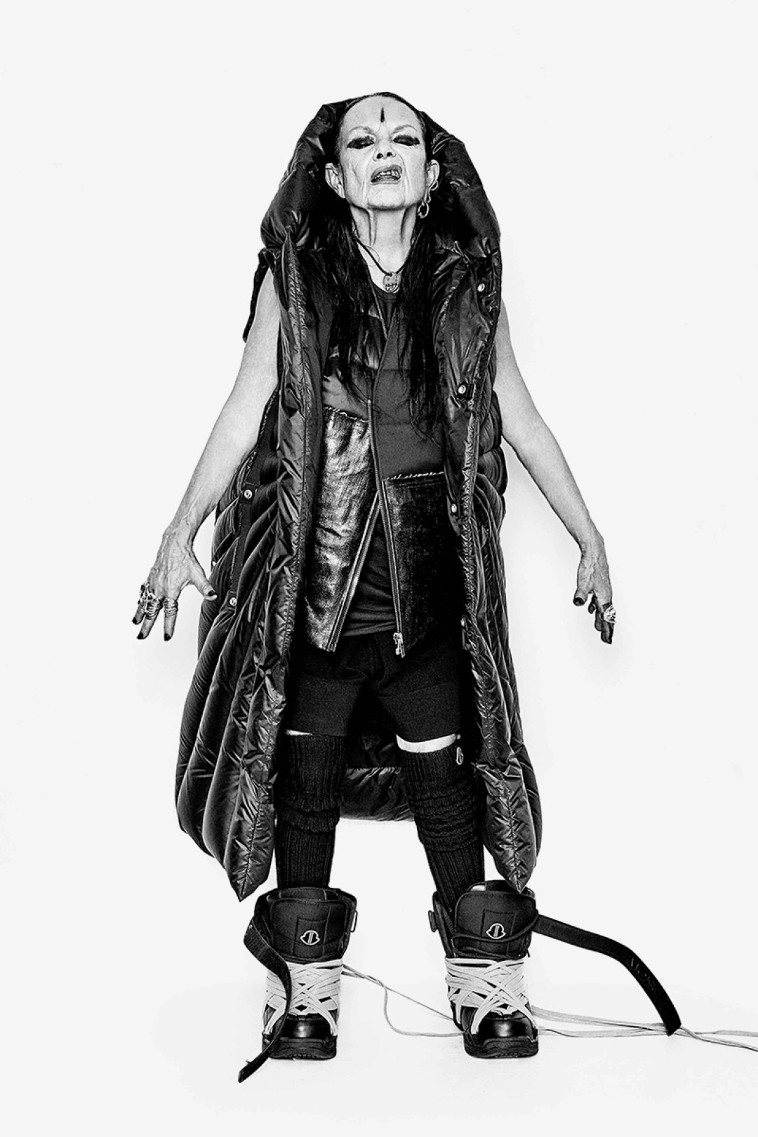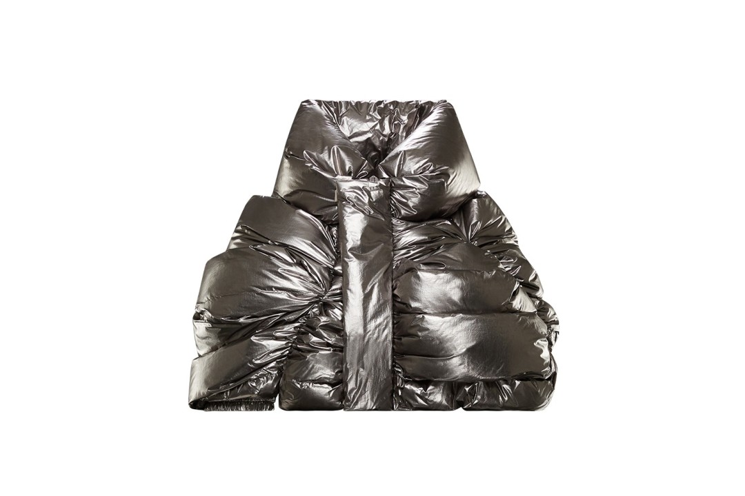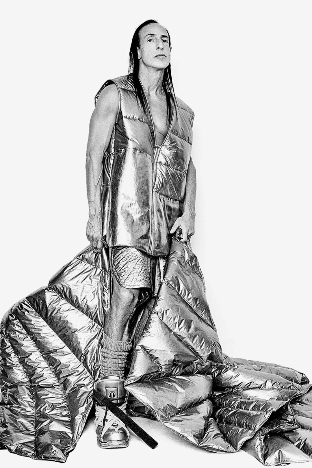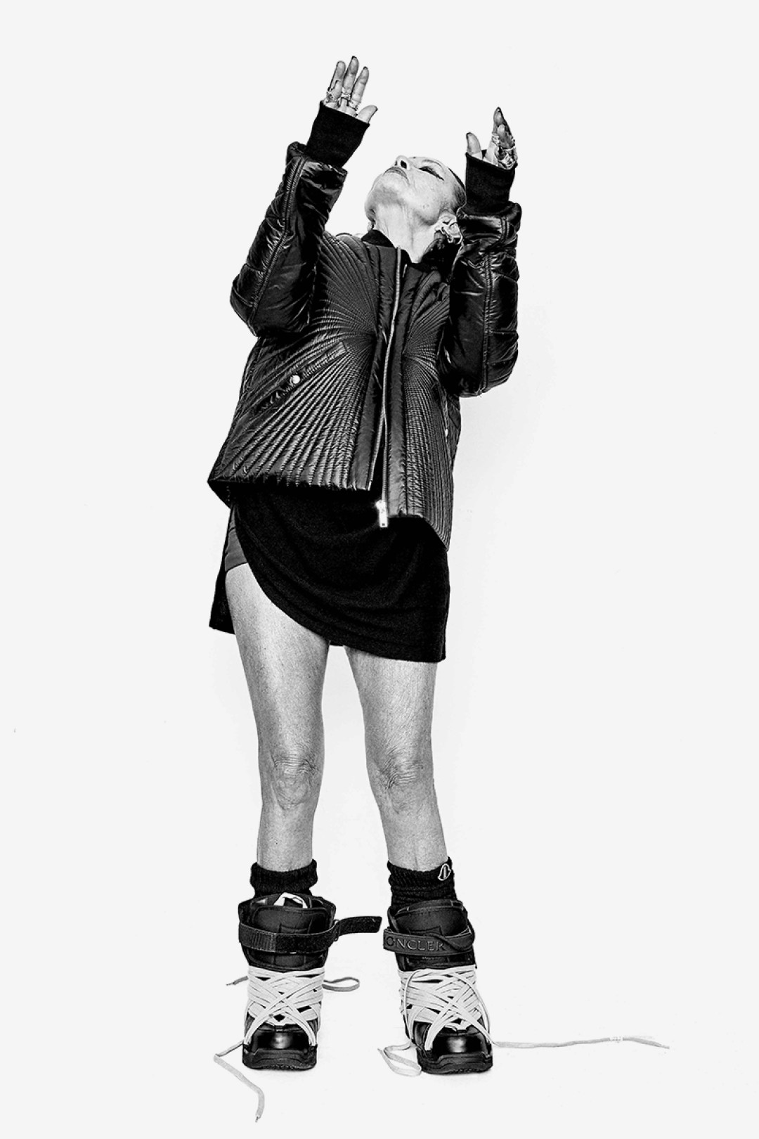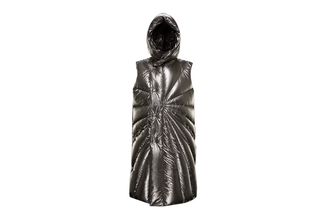 Все пуховики отличаются архитектурной формой, объемными рукавами и воротниками. Коллекция выдержана в трех цветах: черном, бежевом и металлик. В кампейне снялись сами Рик Оуэнс и Мишель Лами — модельер и жена дизайнера.