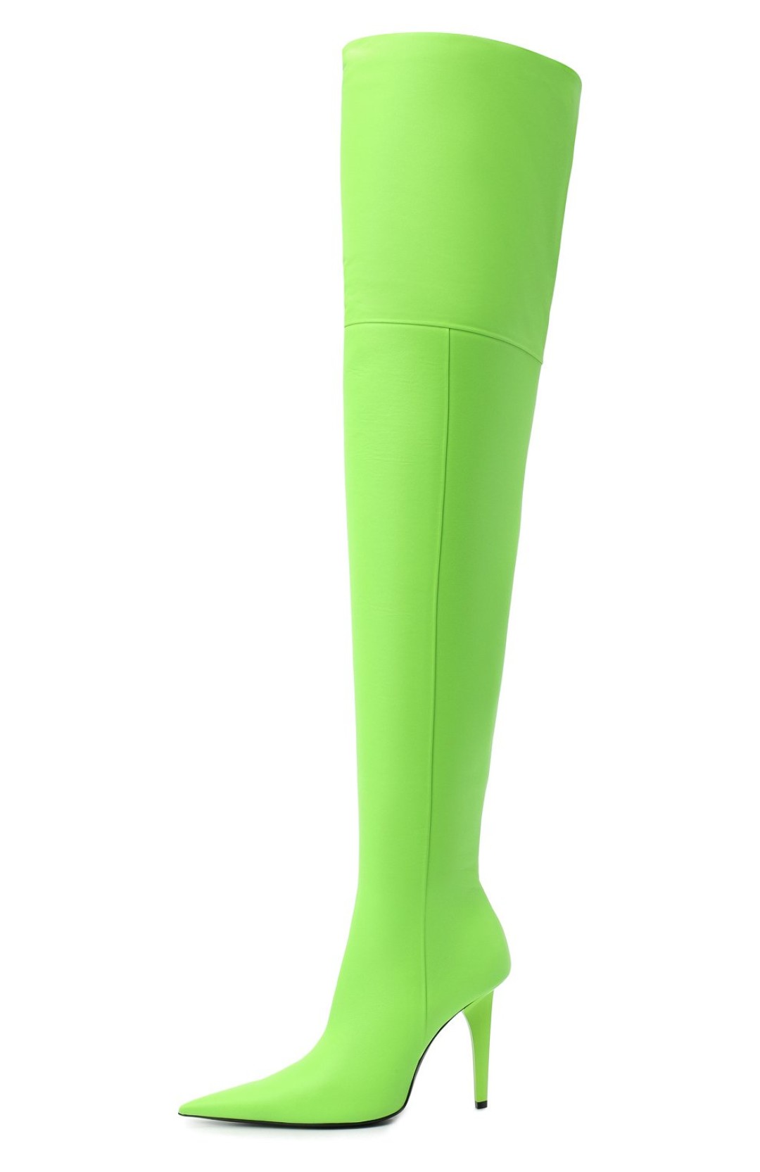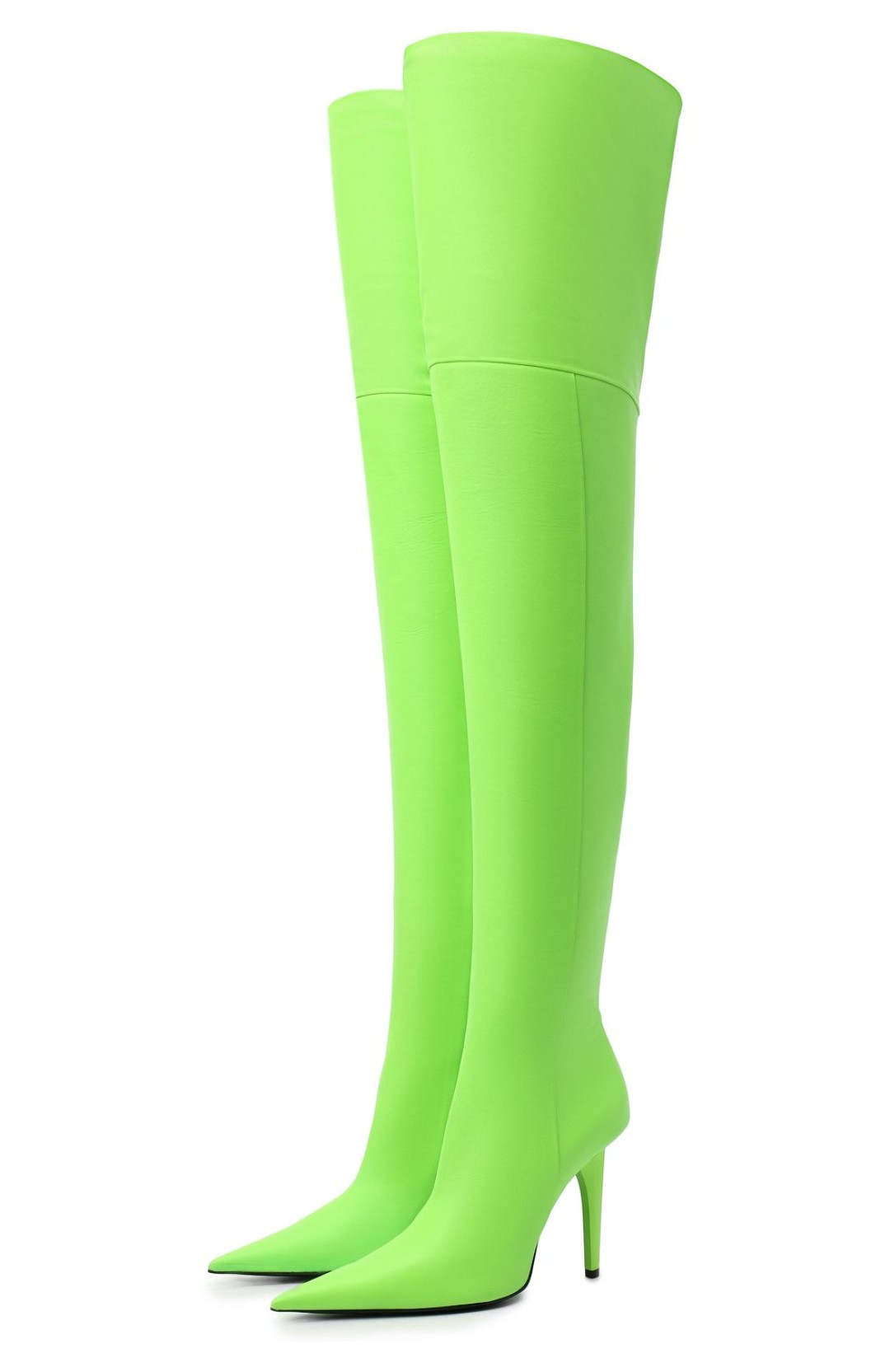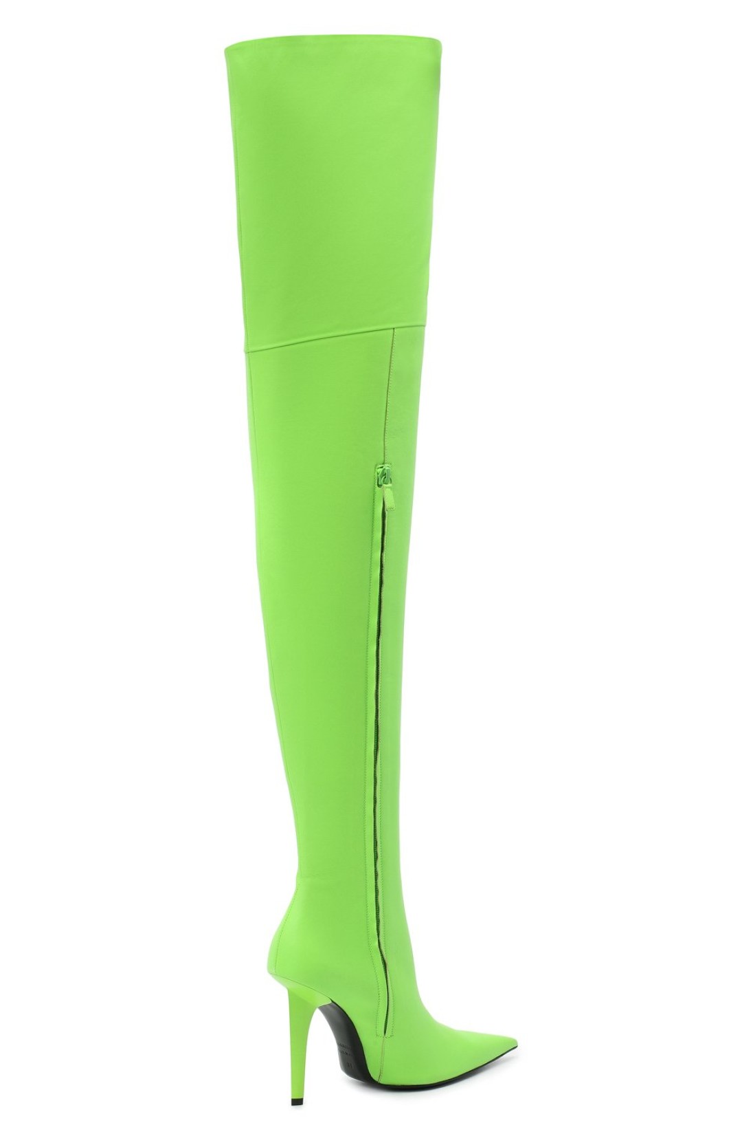 Кислотные ботфорты вошли в осенне-зимнюю коллекцию Balenciaga и прямо на подиуме были испытаны всеми возможными стихиями (в основе сет-дизайна шоу использовались апокалиптичные мотивы). Пара испытание прошла — еще бы, ведь выполнены сапоги из нежной, но прочной кожи.