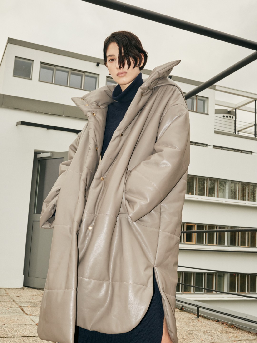 Венгерский бренд Nanushka создал этичную капсульную коллекцию из веганской кожи специально для ЦУМа и ДЛТ. В нее вошли переизданные в цвете Dove Grey самые популярные модели марки, например, стеганая куртка Hide, объемное пальто Eska, однобортный пиджак Cancun, комбинезон Ashton. Лукбук капсулы сняла петербургский фотограф Полина Твердая.