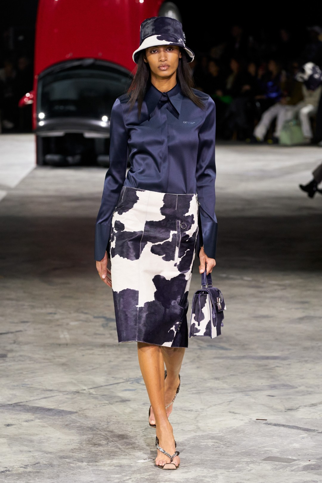 Вещи из подиумной коллекции отличают также крой и материалы. При создании образов Абло использовал круглые вырезы, пайетки и бархат, предложил носить коровий принт, кожаные жакеты украсил граффити и особое внимание уделил обуви и аксессуарам (как уже делал в сезоне весна-лето 2020).