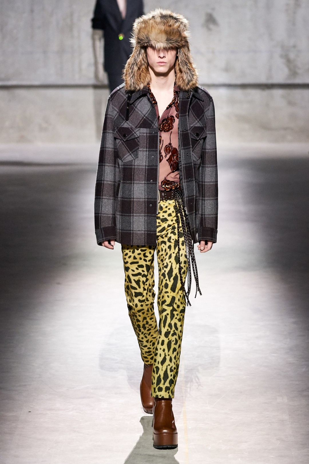 Усилить русскость образа можно благодаря расшитой накидке с бахромой из аналогичной женской коллекции Dries Van Noten (94 800 рублей). А сама шапка-ушанка для надвигающихся холодов обойдется в 45 300 рублей, купить ее можно в ДЛТ.