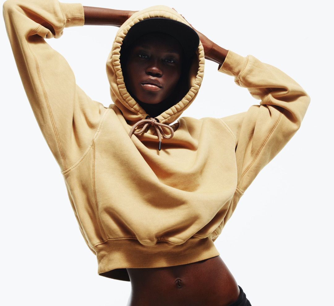 Коллаборация Виктории Бекхэм и спортивного бренда состоит из кроп-топов, леггинсов, свитшота с объемным воротником, худи, аксессуаров: воротников, шапок, рюкзака-трансформера, мини-сумки. А также кроссовок моделей Bolton и Dual Court: первые выполнены из премиальной черной кожи, а вдохновлены ретробаскетбольными силуэтами 80-х и 90-х, вторые представлены в цветах серебристый металлик и бежевый камень.