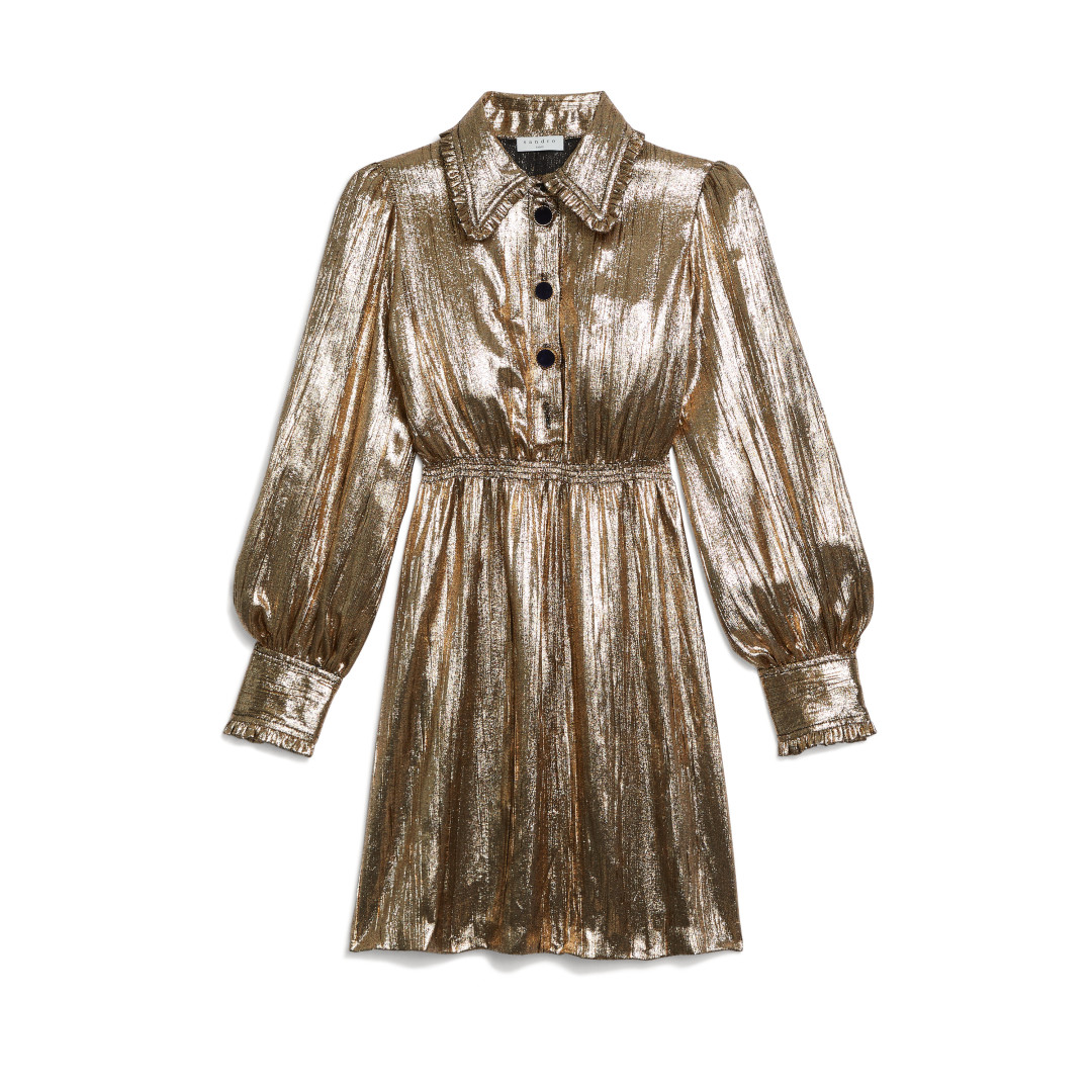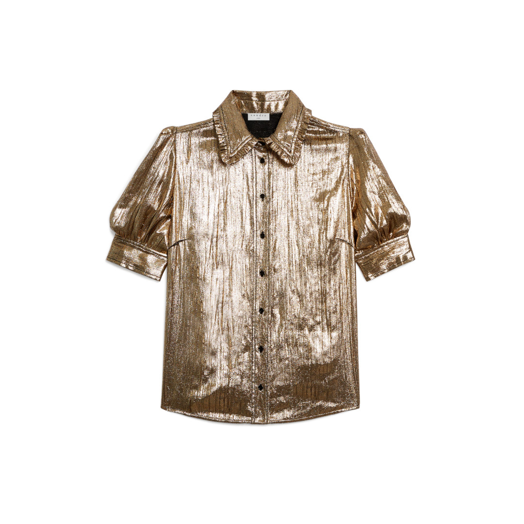 Золотые рубашки и платья в рождественской коллекции Sandro