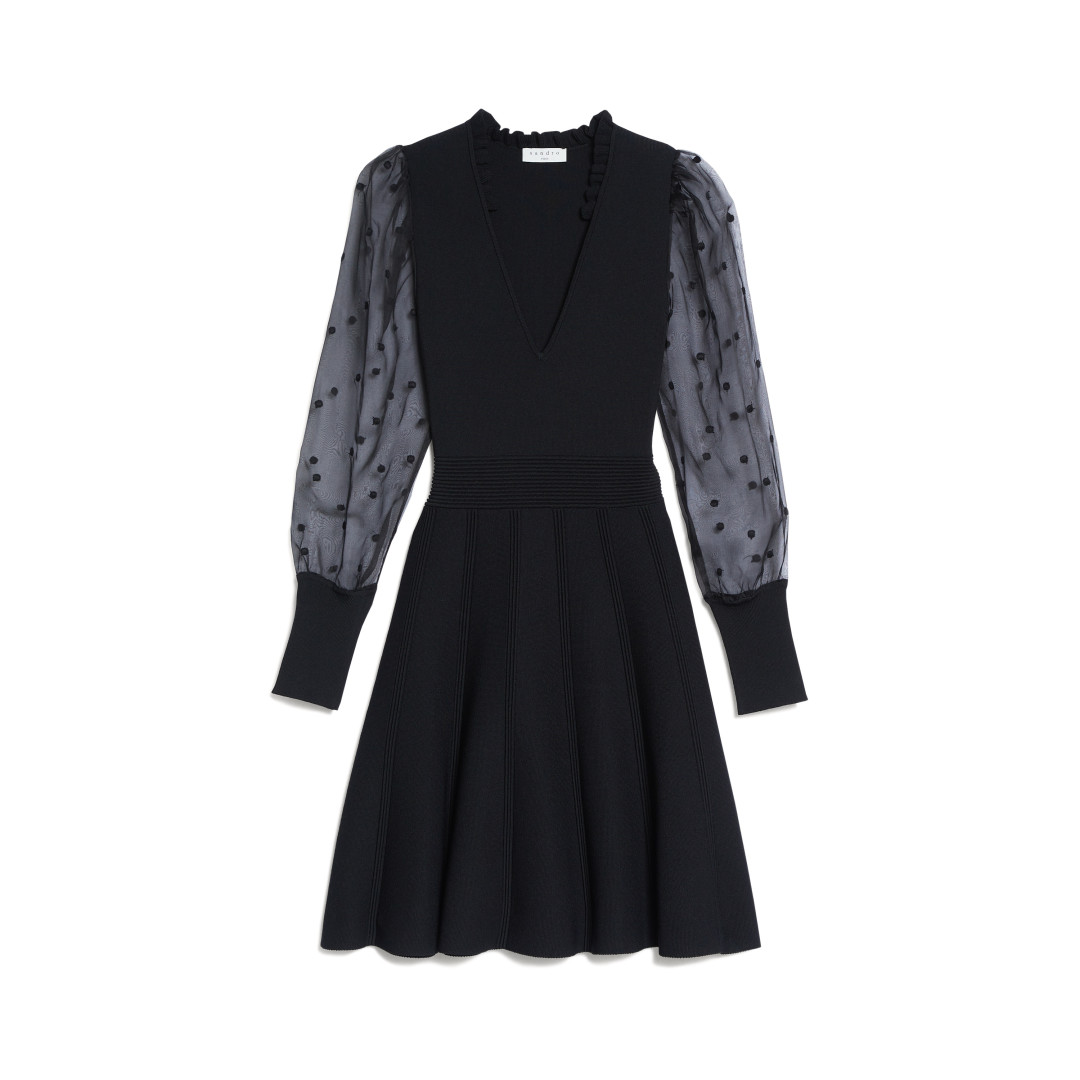 Чем ближе Рождество и Новый год, тем больше хочется нарядного и блестящего. Французский бренд Sandro это понимает, поэтому в его праздничной коллекции полностью золотые платья и рубашки, а еще много цветных вещей: красные, синие, голубые, бирюзовые, фиолетовые, зеленые. Есть и платья базовых белого и черного оттенков, украшенные воланами, кружевами, с прозрачными объемными рукавами, которые отвечают как раз за нарядность. Даже к классическим челси Sandro добавили золотые детали. Празднику явно быть!
