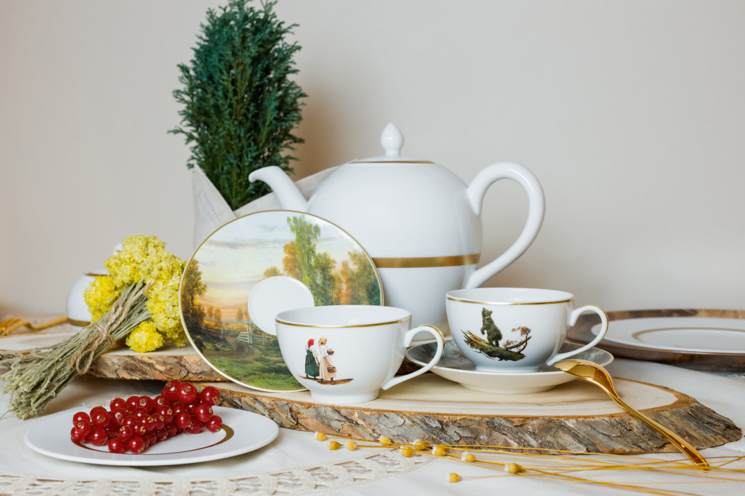 Мануфактура Bernardaud, которая создает лиможский фарфор, сделала совместную коллекцию с Третьяковской галереей. Коллекция лимитированная — всего 100 экземпляров — и выпущена специально для России. В нее вошли чашки и блюдца из фарфора, украшенные работами художника Ивана Шишкина. Так декор одной из чайных пар вдохновлен картиной «Утро в сосновом лесу», второй — картиной «Вечер», изображающей крестьянок, возвращающихся домой из леса. Каждый подарочный набор из двух чайных пар дополнен сертификатом подлинности от Bernardaud.