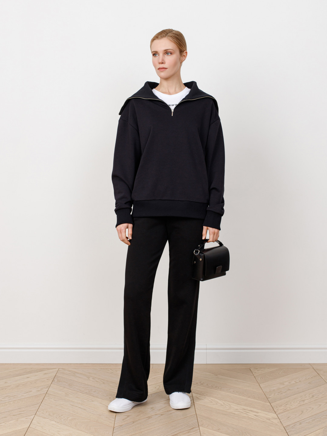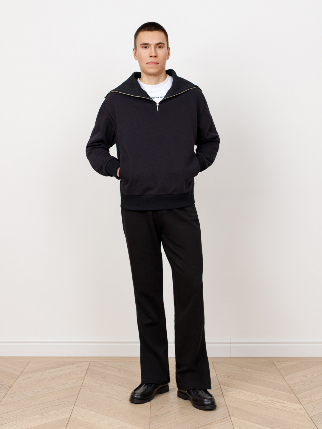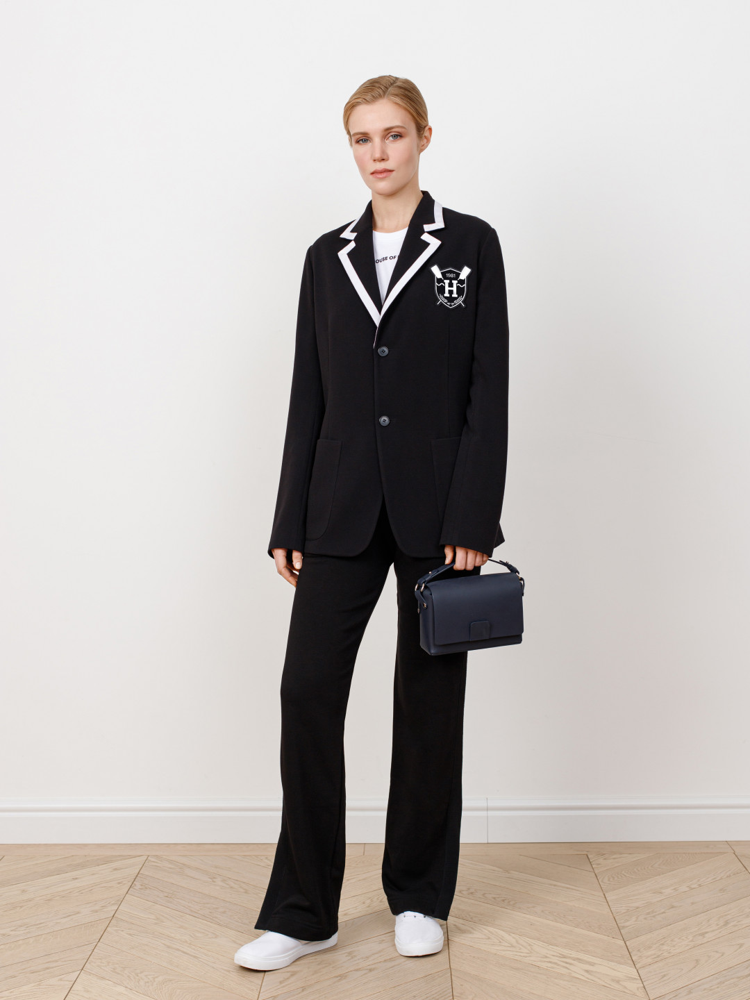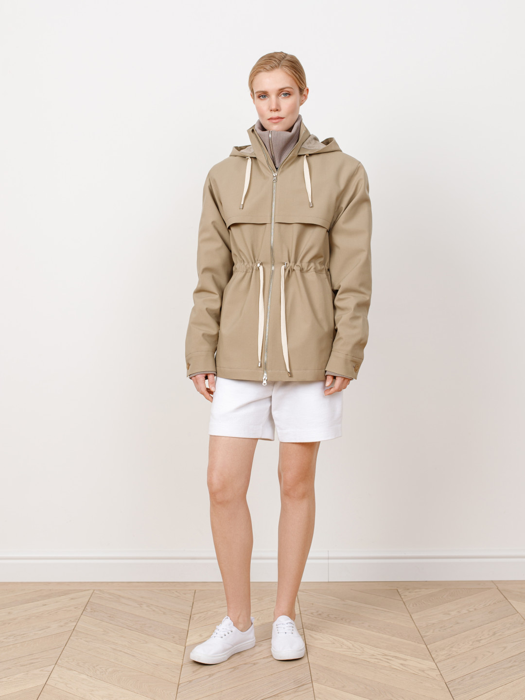 Универсальная коллекция соединила в себе визуальные коды, функциональность униформы и классического мужского костюма. В капсулу вошли свитеры, приталенный пиджак с монограммой House of Leo, расклешенные брюки, шорты, парка, футболки, свитеры с объемным воротником на замке, ветровка, съемный капюшон, а также свободные брюки в морскую полоску, переосмысленную Леонидом Алексеевым. Цветовая палитра капсулы столь же универсальна, сколько и ее наполнение — бежевый, черный, кофейный. В качестве яркого вкрапления — оранжевая подкладка съемного капюшона.
