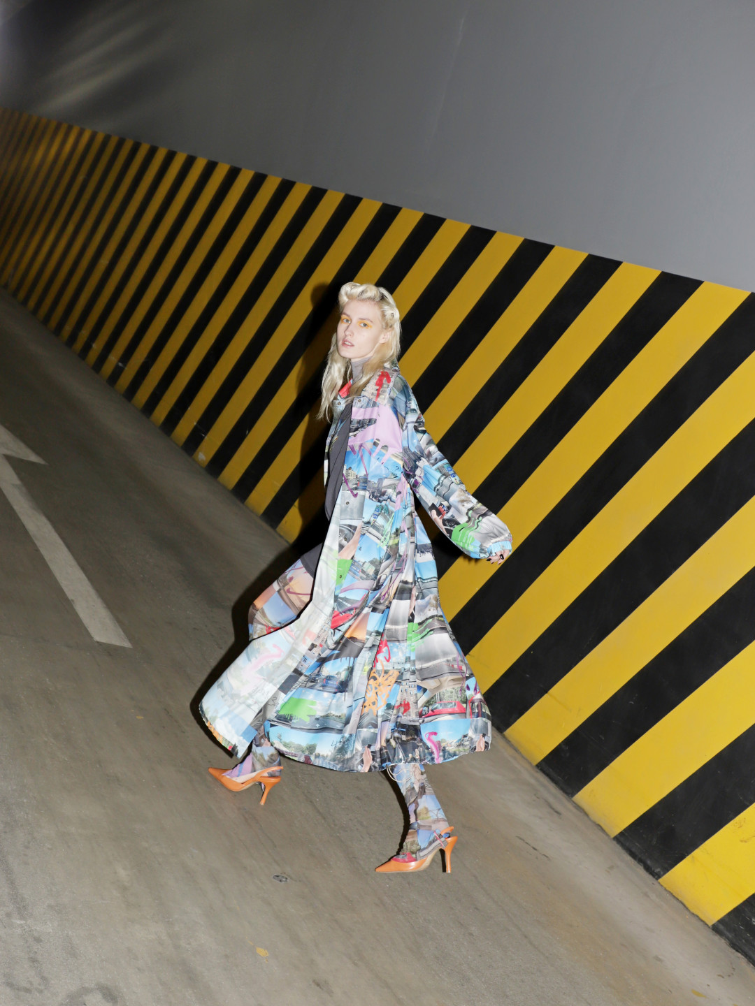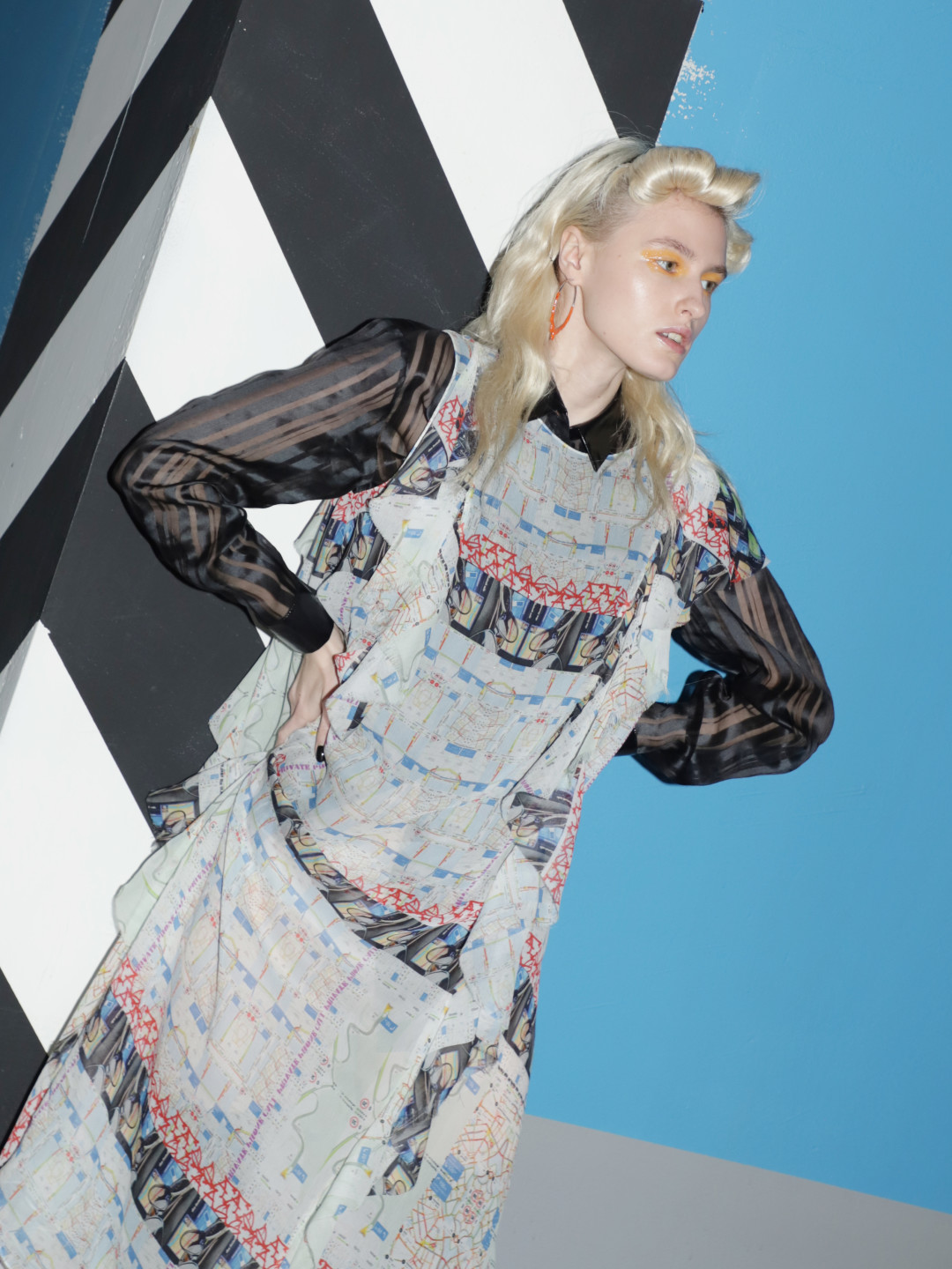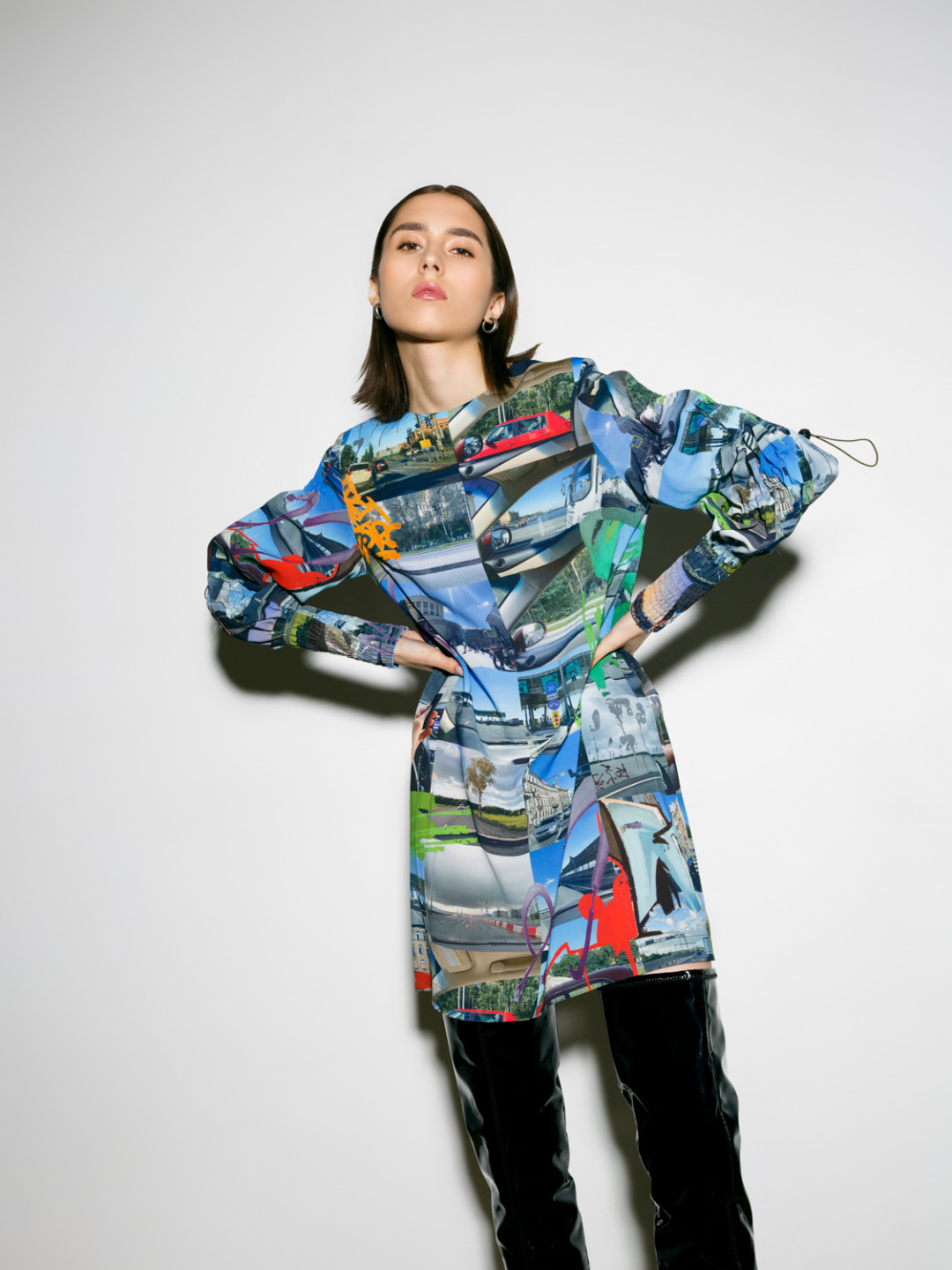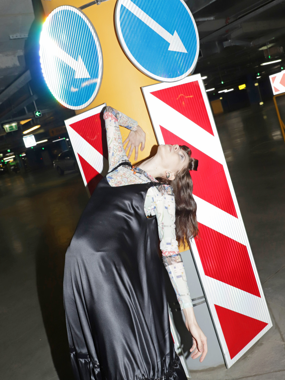 Пететрбургская марка OLA OLA представила новую весенне-летнюю коллекцию, в основе которой — движение и поиск. Концепция отражена в лукбуке, снятом среди дорожных указателей и атрибутов навигации. Продолжают настроение коллекции два активных принта, украсивших платья, леггинсы, юбки и блузы. Один из принтов представляет собой фотографии, сделанные дизайнером Ольгой Гинзбург из окна ее автомобиля с наложением граффити, второй — скриншоты с телефона: навигатор, плейлисты и звонки, объединенные в паттерн.