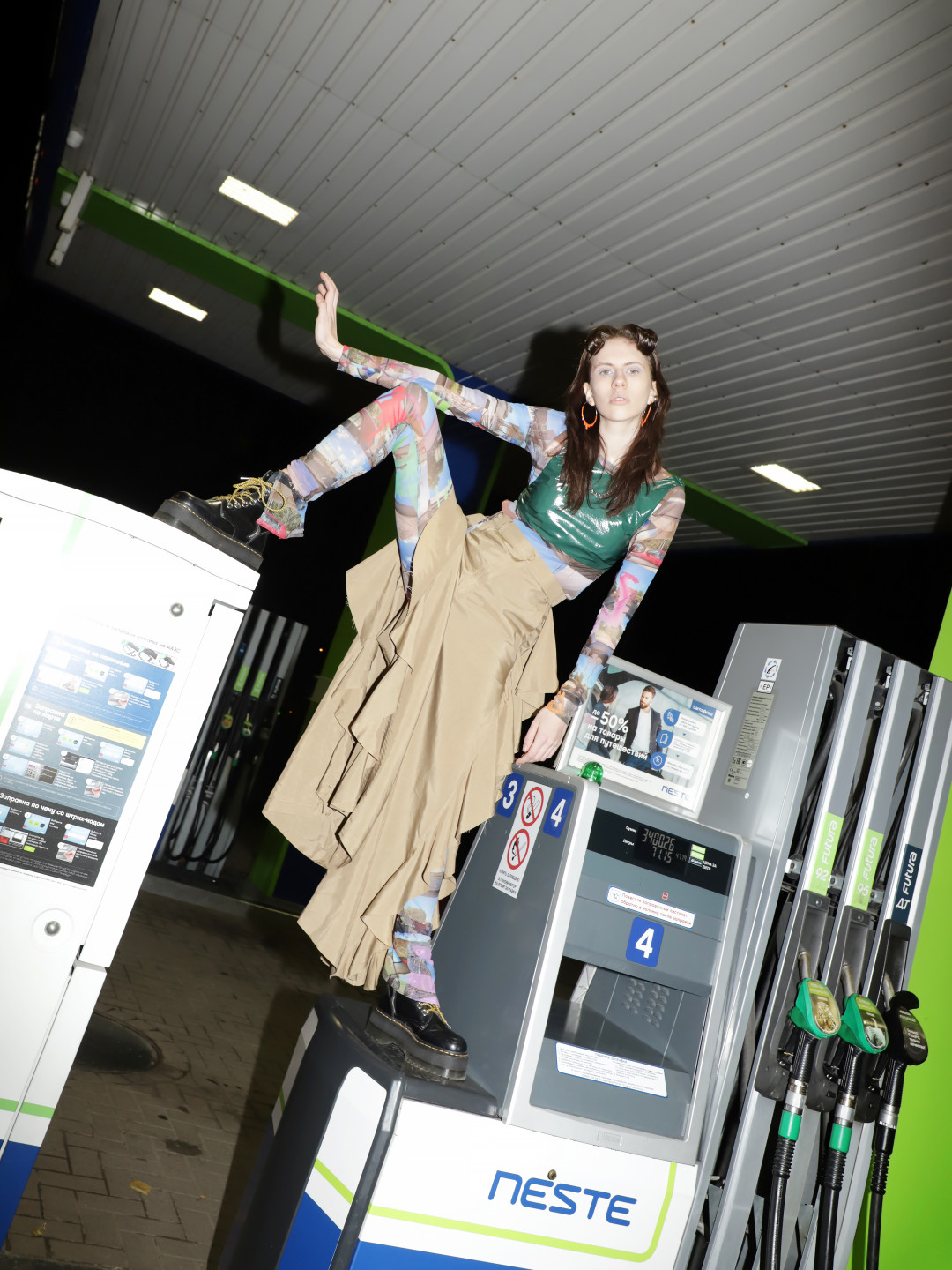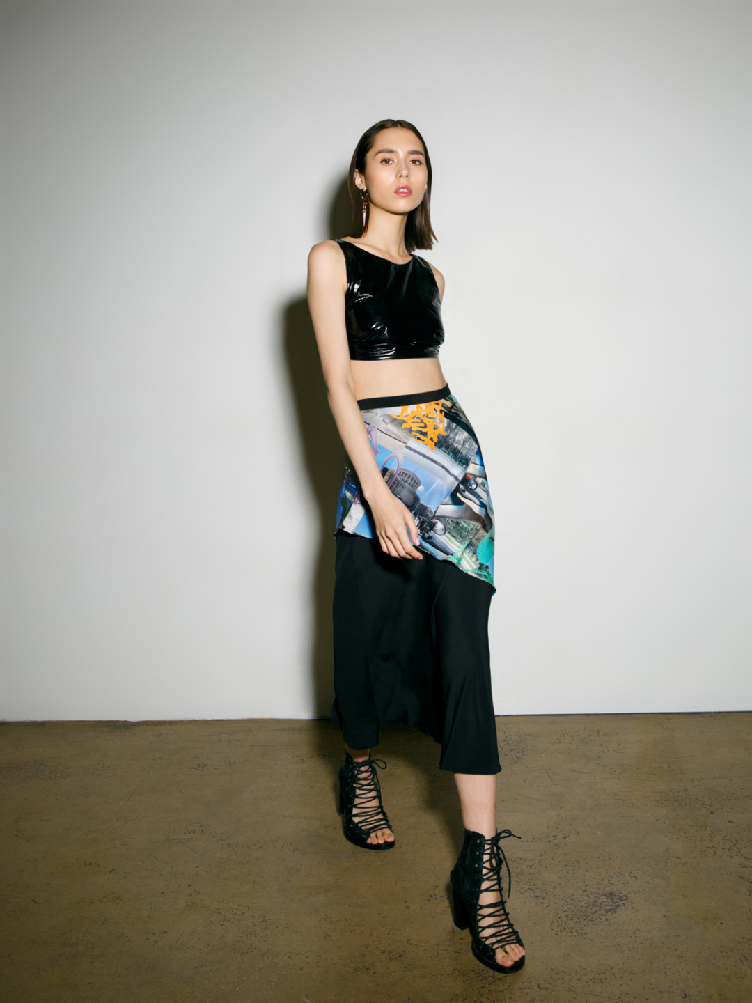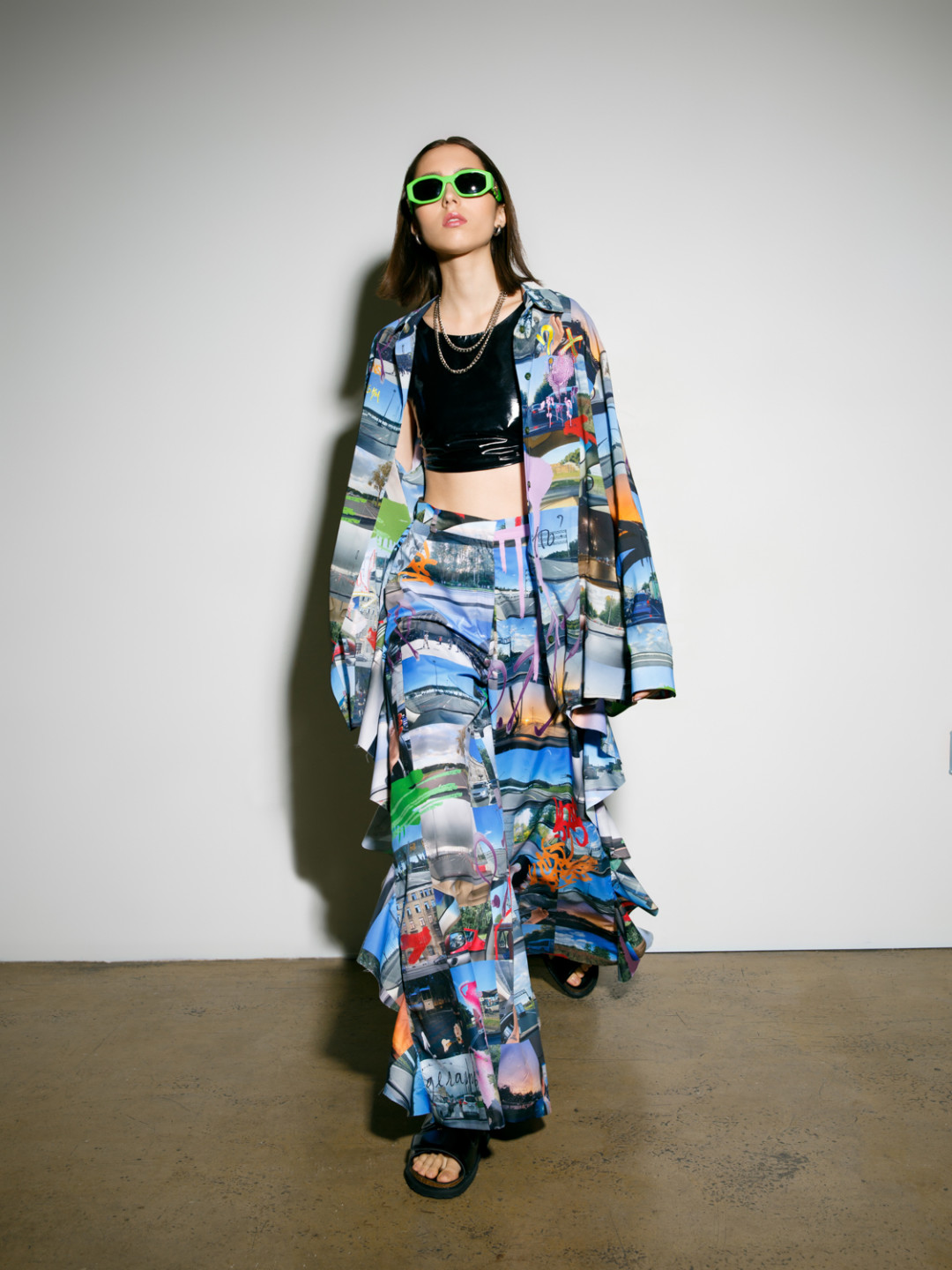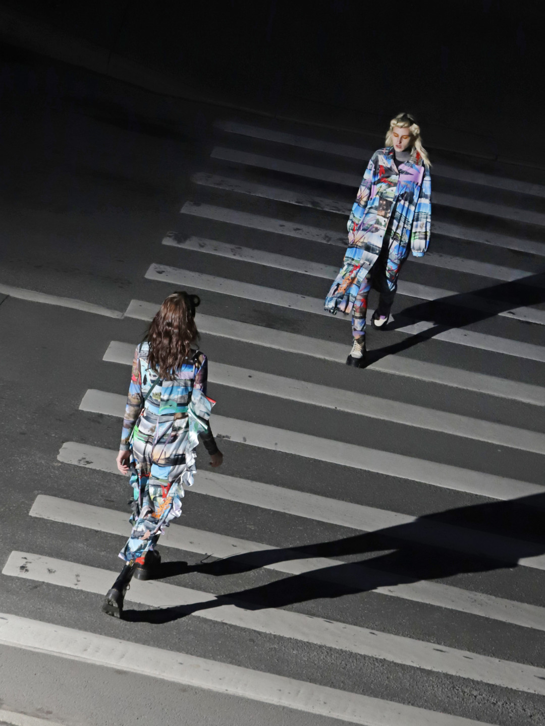 Пететрбургская марка OLA OLA представила новую весенне-летнюю коллекцию, в основе которой — движение и поиск. Концепция отражена в лукбуке, снятом среди дорожных указателей и атрибутов навигации. Продолжают настроение коллекции два активных принта, украсивших платья, леггинсы, юбки и блузы. Один из принтов представляет собой фотографии, сделанные дизайнером Ольгой Гинзбург из окна ее автомобиля с наложением граффити, второй — скриншоты с телефона: навигатор, плейлисты и звонки, объединенные в паттерн.