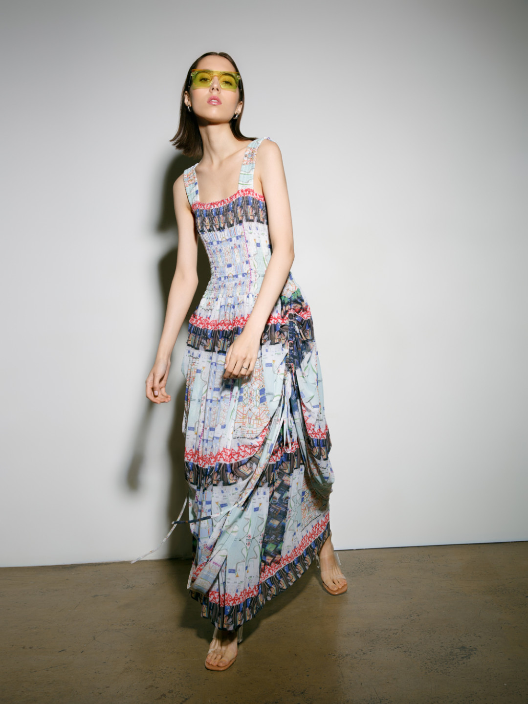 Также новая коллекция OLA OLA олицетворяет константу современности: гардероб, дополняющий жизнь, а не превозносящийся над ней. Благодаря сочетаниям материалов — сетки и нейлона с итальянским шелком и шифоном — дизайнер марки Ольга Гинзбург соединяет в образах богемную и спортивную эстетику. Среди главных декоративных элементов OLA OLA SS 2021 — стяжки, сборки, драпировки и воланы с необработанным краем. Всего в коллекции 37 моделей и пара аксессуаров. Она разделена на дропы: первый вышел сейчас, второй — в марте.