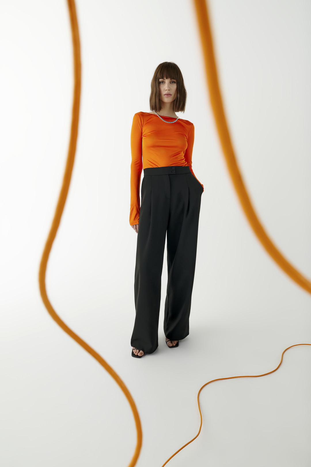 Коллекция LaTrika выполнена из таких материалов, как эко-кожа, японский вельвет, кашемир, шерсть. А ее цветовая палитра вдохновлена природой — солнцем, небом, землей и зеленью, благодаря которым появились сочетания глубокого синего, приглушенного серого, зеленого и главное цвета коллекции — оранжевого.