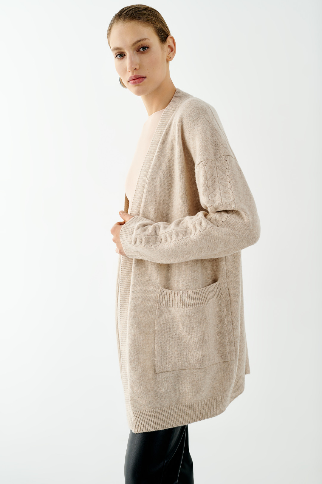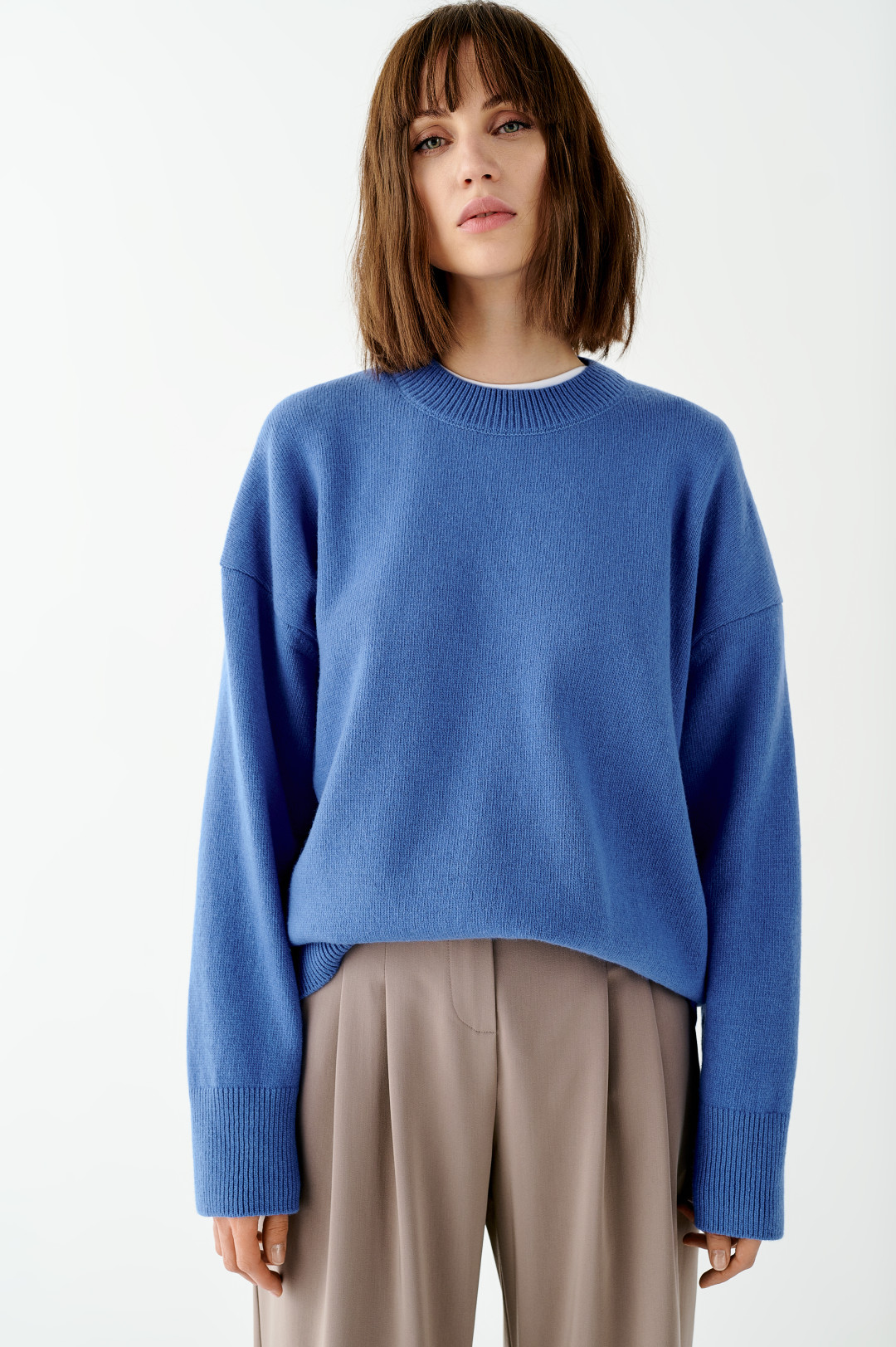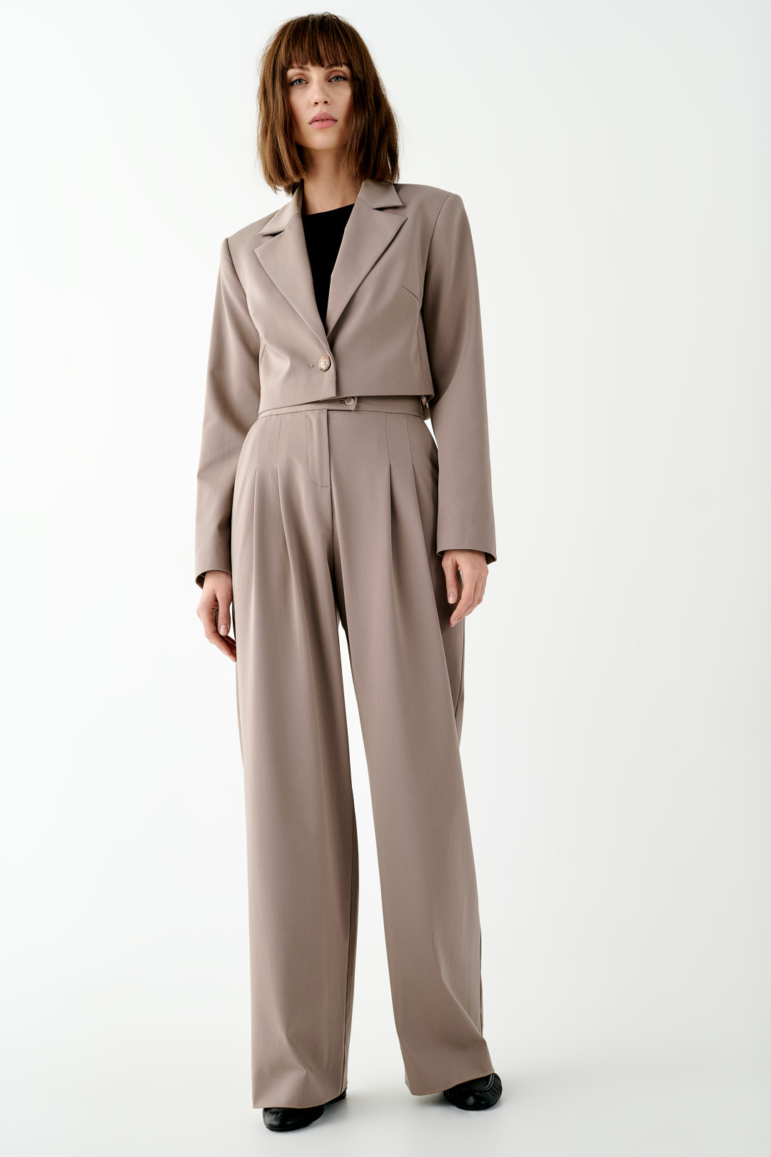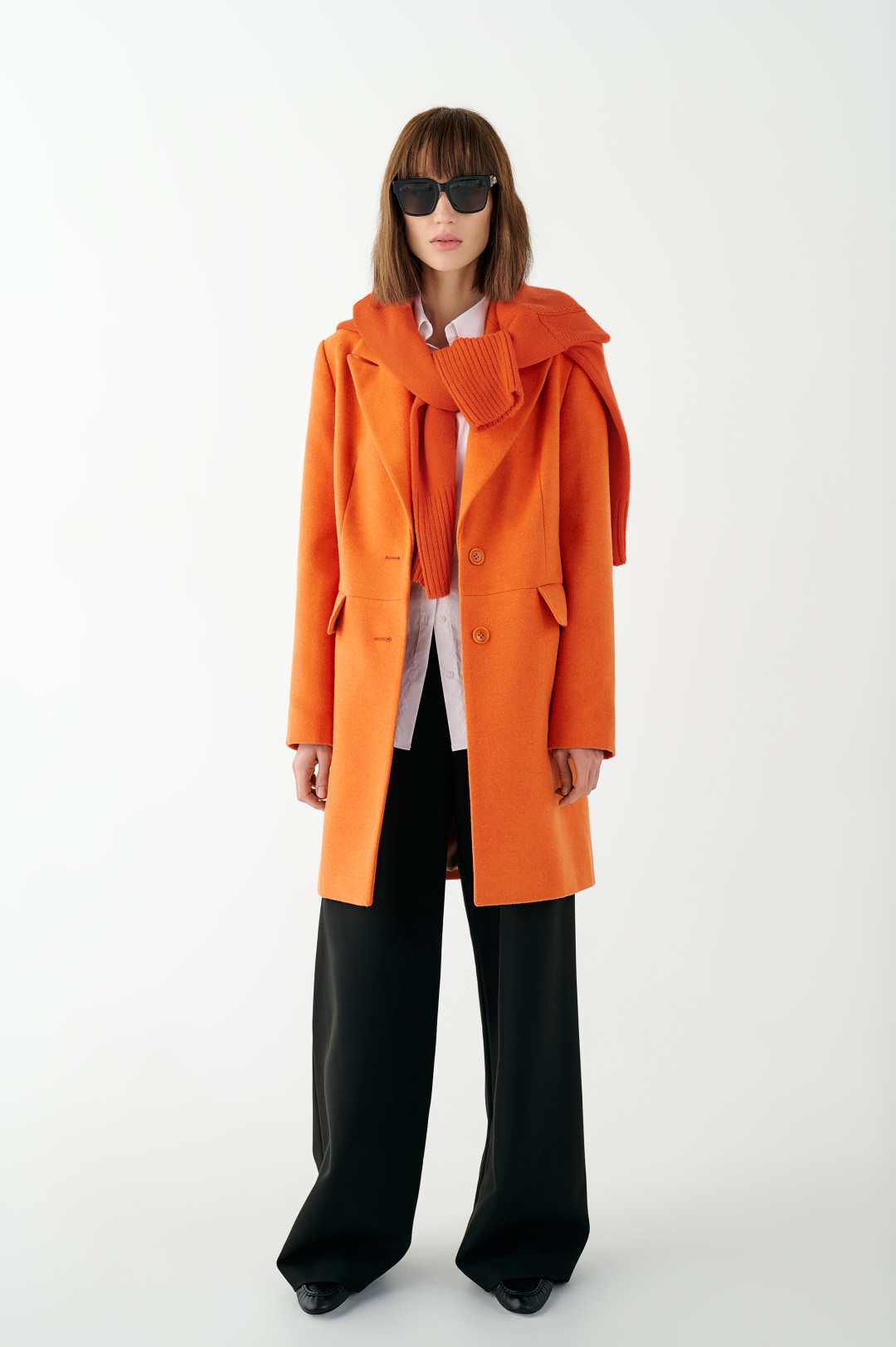 Так среди жакетов модели без лацканов, укороченные, из кожи, однобортные с четырьмя карманами и жакет-трансформер с отстегивающимися карманами. Носить любой из них можно с оверсайз свитерами, шелковыми рубашками, юбками-гофре, шерстяными и кожаными брюками. Все вещи довольно аскетичны, а концепт коллекции отражен в деталях. Например, отсутствие лацканов на жакетах — это символ тишины, оранжевые канты — призыв улыбнуться, колорблокинг из разных тканей — воплощение идеи разумного потребления.