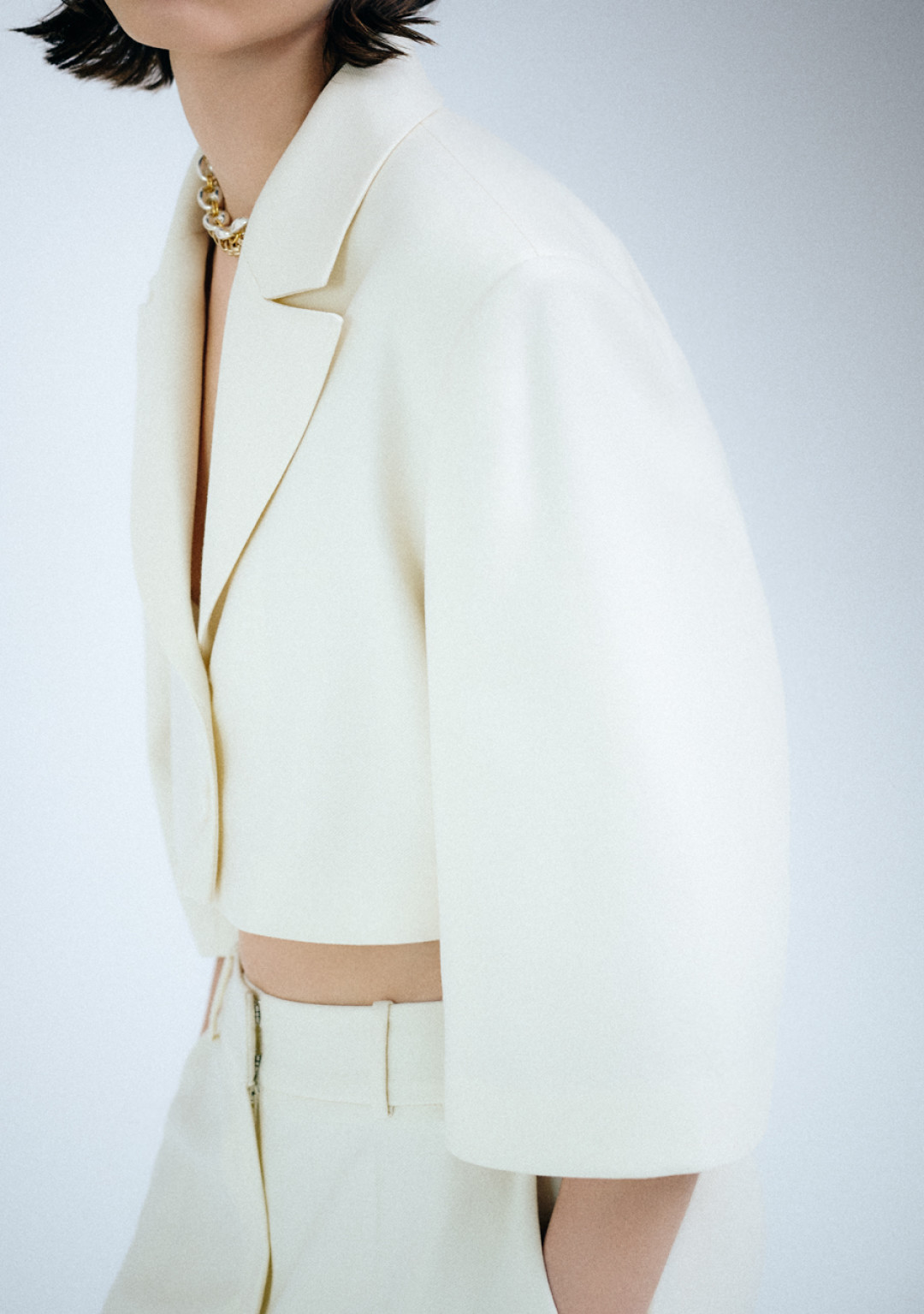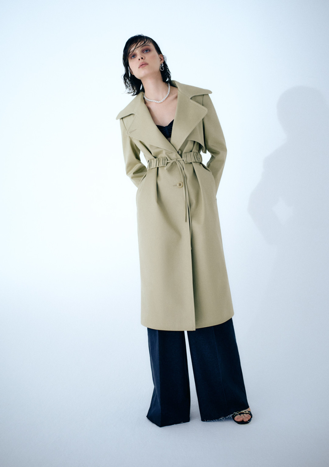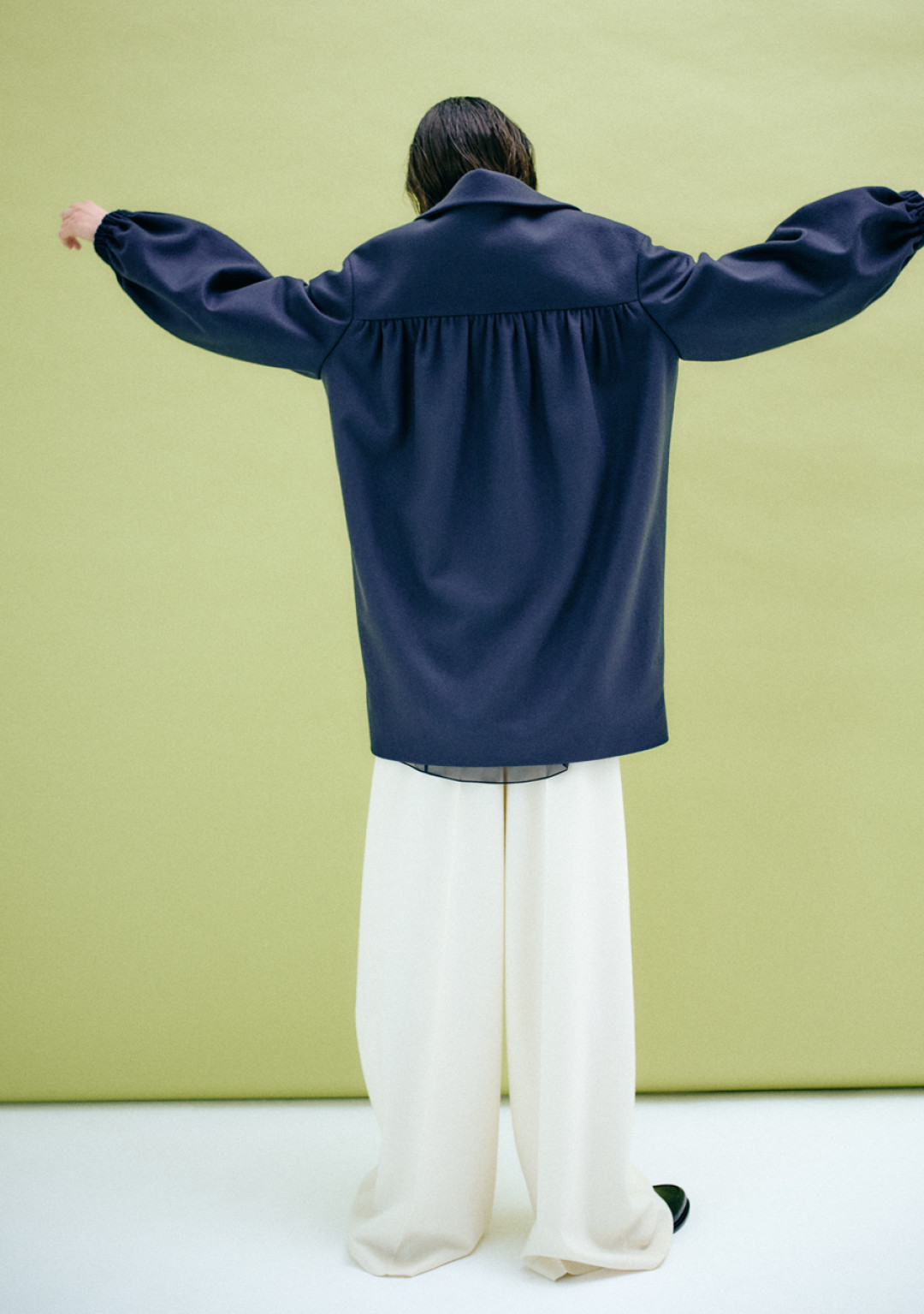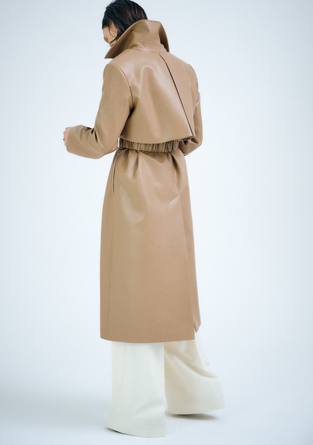 Новая коллекция OSOME2SOME состоит из широких черных брюк на низкой посадке из мягкого черного денима, голубого шелкового платья, бомбера из плотной шерсти, розового укороченного жакета, но главные вещи — тренч из эко-кожи цвета кокосового молока, небесно-голубое летнее пальто без воротника и костюм неонового розового цвета.