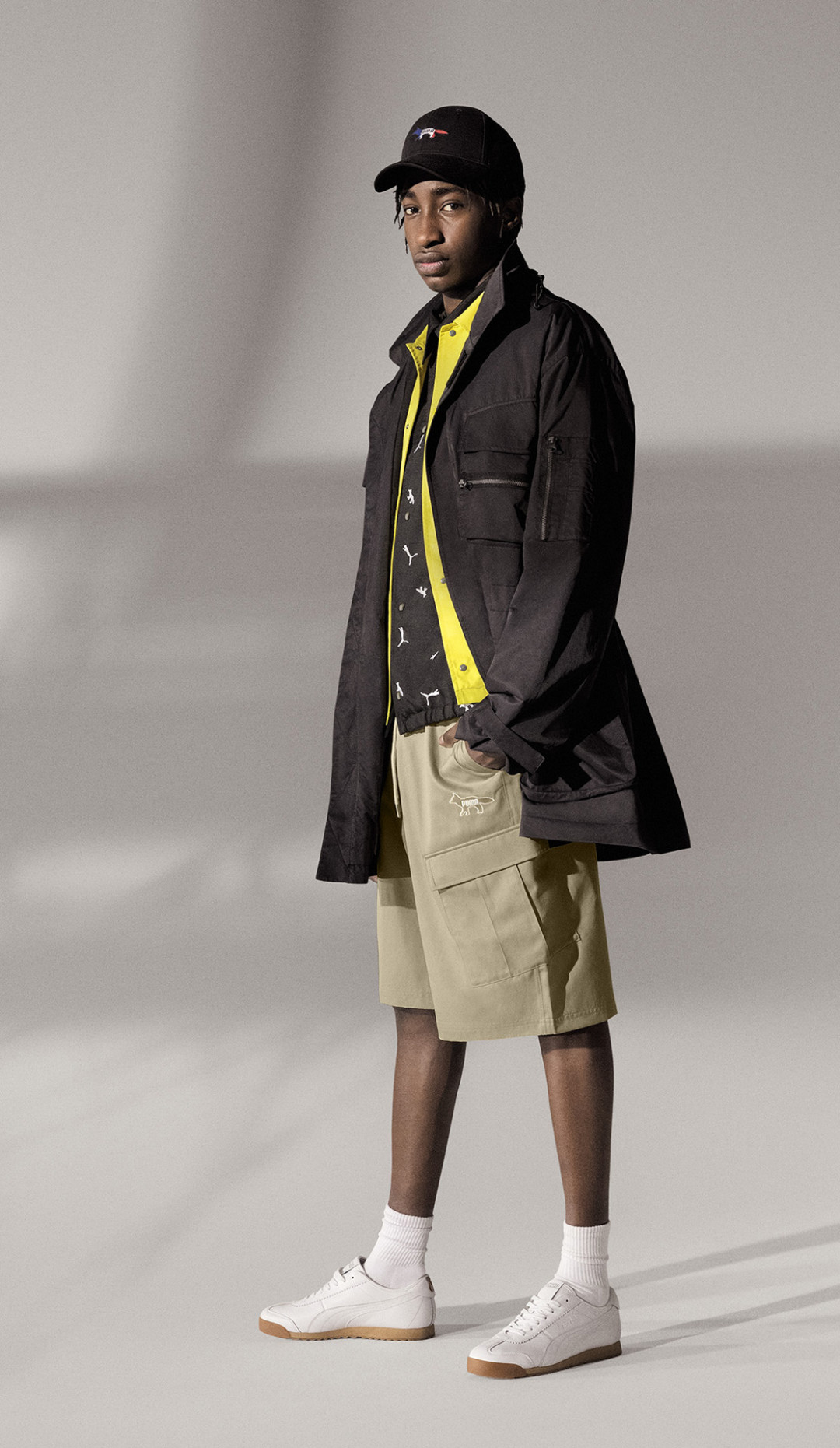 В первой совместной коллекции PUMA x MAISON KITSUNÉ объединились элементы японского и французского дизайна, на которых строится ДНК бренда Maison Kitsuné, а также классические силуэты PUMA – и получился уникальный стритвеар-шик. Расслабленный и лаконичный крой дополняет сдержанная палитра: бежевый, коричневый, белый и черный, а акцентными стали синий, бордовый и жизнерадостный желтый – хит 2021 года. Ключевые элементы коллекции – прорезиненные ткани и детали и аутентичный совместный брендинг. Фирменный логотип Maison Kitsuné – лисицу (так переводится kitsuné) – можно увидеть на всех вещах. В японской мифологии это магическое животное способно принимать разные обличья, что созвучно идеям бренда – умению преображаться и быть разным, следуя за вдохновением.