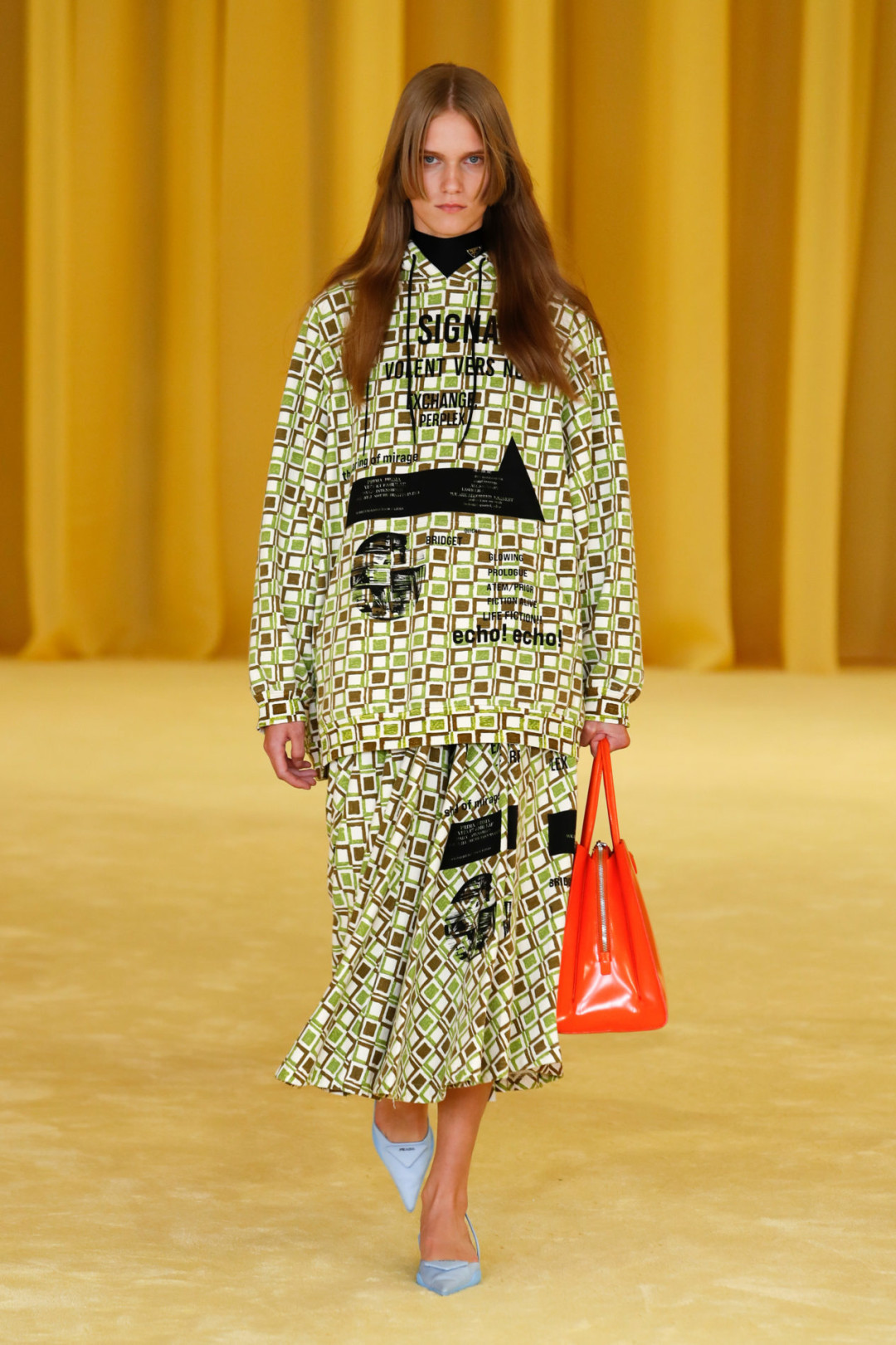 Идеальный мэтч создал столь же идеальный тандем Миуччи Прада и Рафа Симонса. Мир увидел эти туфли на первом совместном показе двух креативных директоров бренда. Фирменный элемент одной из самых популярных пар сезона — каблук в форме запятой, который опять же отсылает к архивным моделям Pradа. И, конечно, туфли украшены логотипом модного дома.