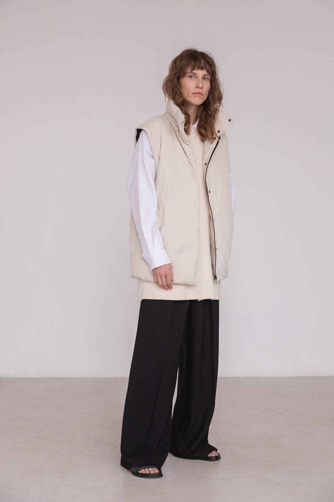 В коллекцию вошли женские и мужские куртки со съемными элементами, благодаря которым одежда трансформируется в легкие жилеты, дождевики из экологично переработанной мембранной ткани, а также лимитированные тренчи из стоковых итальянских материалов.