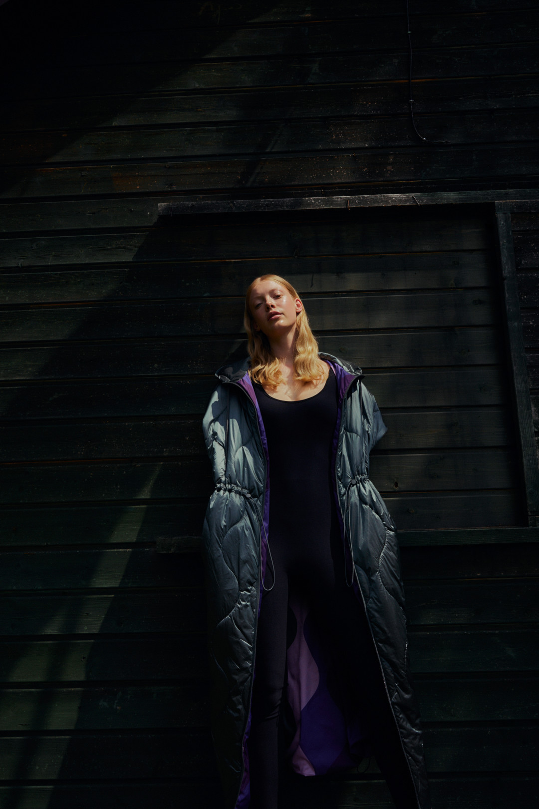 Reserved Athleisure состоит из классических спортивных костюмов и разнообразной верхней одежды: от курток в стиле колорблок с длинными рукавами до непромокаемых пальто с капюшоном. Также в коллекции есть трикотажные платья, свитшоты, леггинсы, велосипедки и боди. Все вещи устойчивы к изменению погоды, видны в темноте благодаря светоотражающим элементам, а также они многофункциональны. Например, длинный жилет трансформируется в спальный мешок или в рюкзак, а куртку-парку можно использовать как плед. Среди актуальных элементов и деталей круглые вырезы по бокам, накладные карманы, заклепки. В цветовой палитре — яркая фуксия, сиреневый, глубокий фиолетовый, кобальт и стальной зеленый, разбавленные оттенками серого и черного.