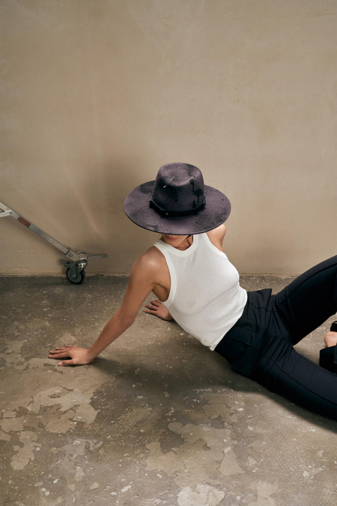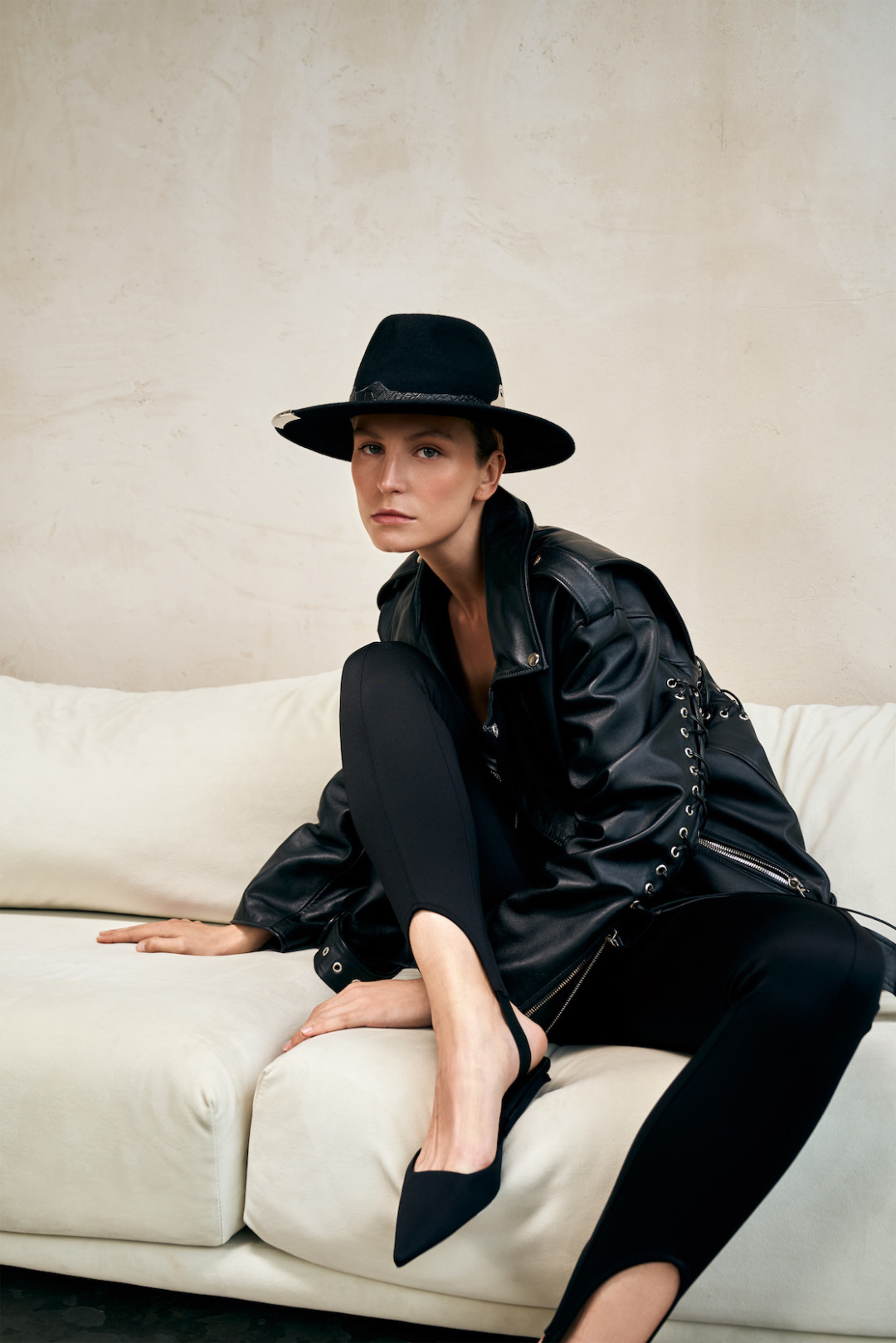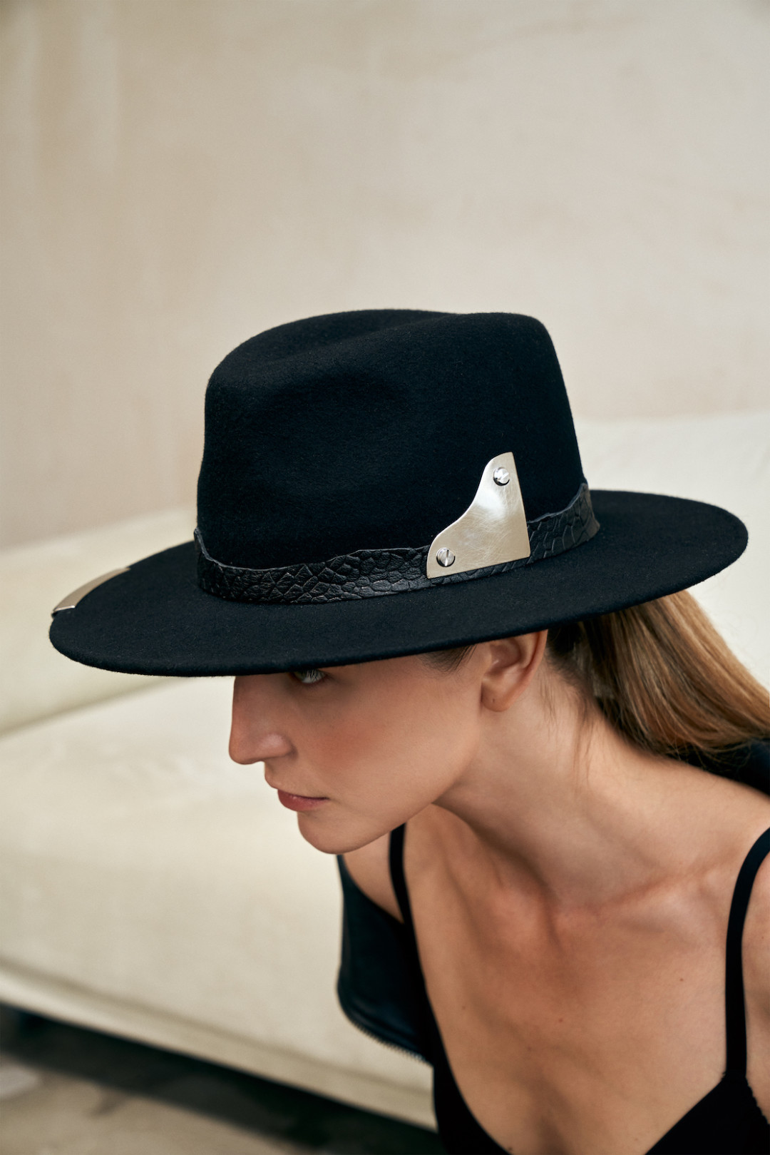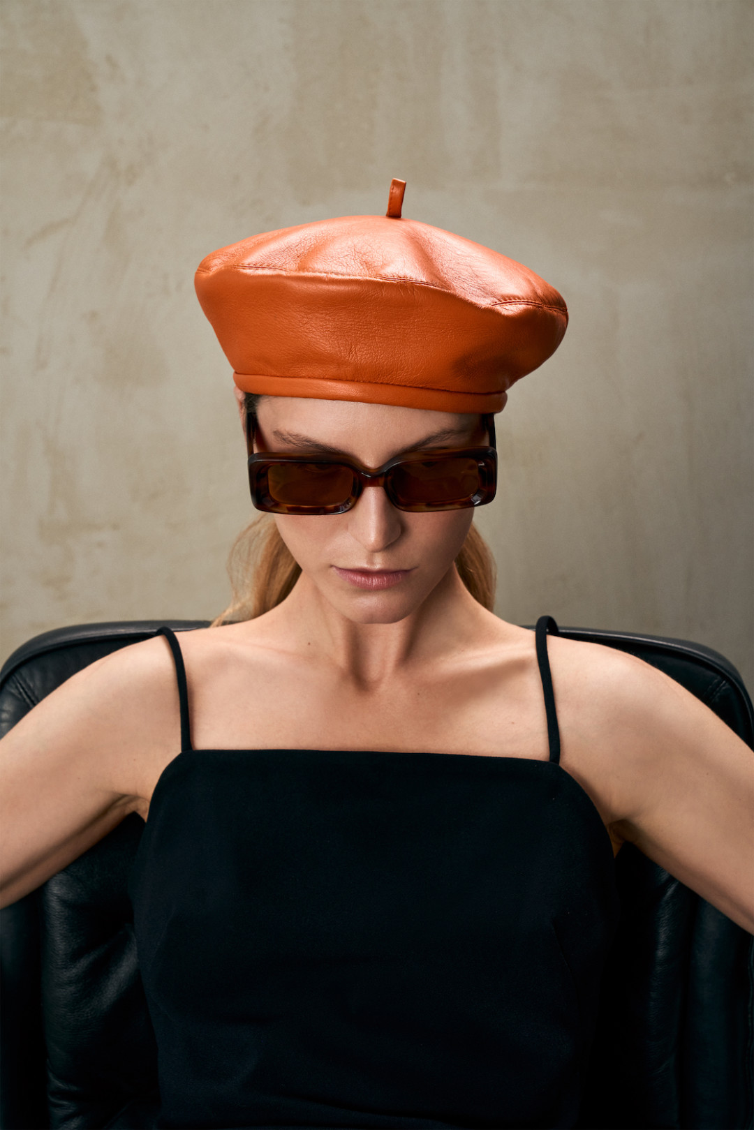 Среди головных уборов осенней коллекции Cocoshnick Headdress шляпы из фетра и велюра, декорированные кожаными и металлическими элементами, кожаные панама и берет, платки с принтом и бейсболка, которую украсила цепочка. Шляпы и бейсболки также дополнены надписью с названием коллекции — Change your skin. Цветовая палитра состоит из трендового оранжевого, а также классических черного, белого и темно-синего оттенков.