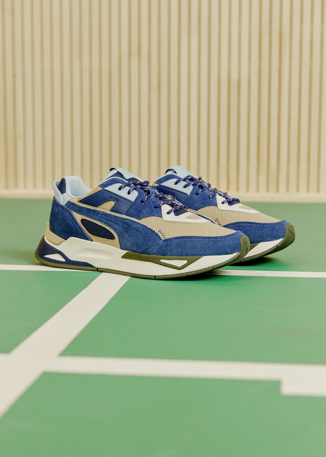 В рамках второй коллаборации дизайнеры переосмыслили культовую модель Suede, которой уже более 50 лет: сникерхедам придутся по душе оттенок «кофе с молоком», голубые формстрайпы, вышитая лисица на пятке и крип-подошва. Преобразились и кроссовки Mirage Sport, выполненные в фирменных оттенках коллаборации, — советуем поторопиться, чтобы успеть заполучить их в свою коллекцию.