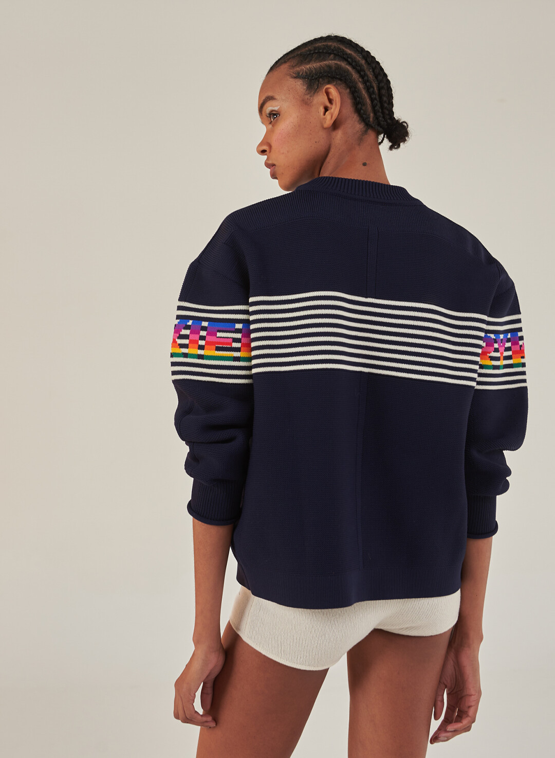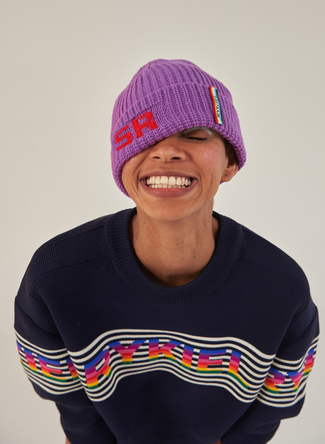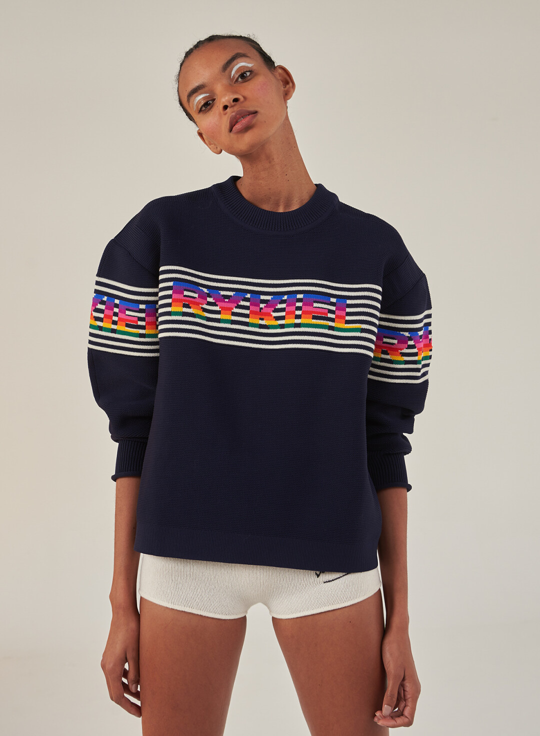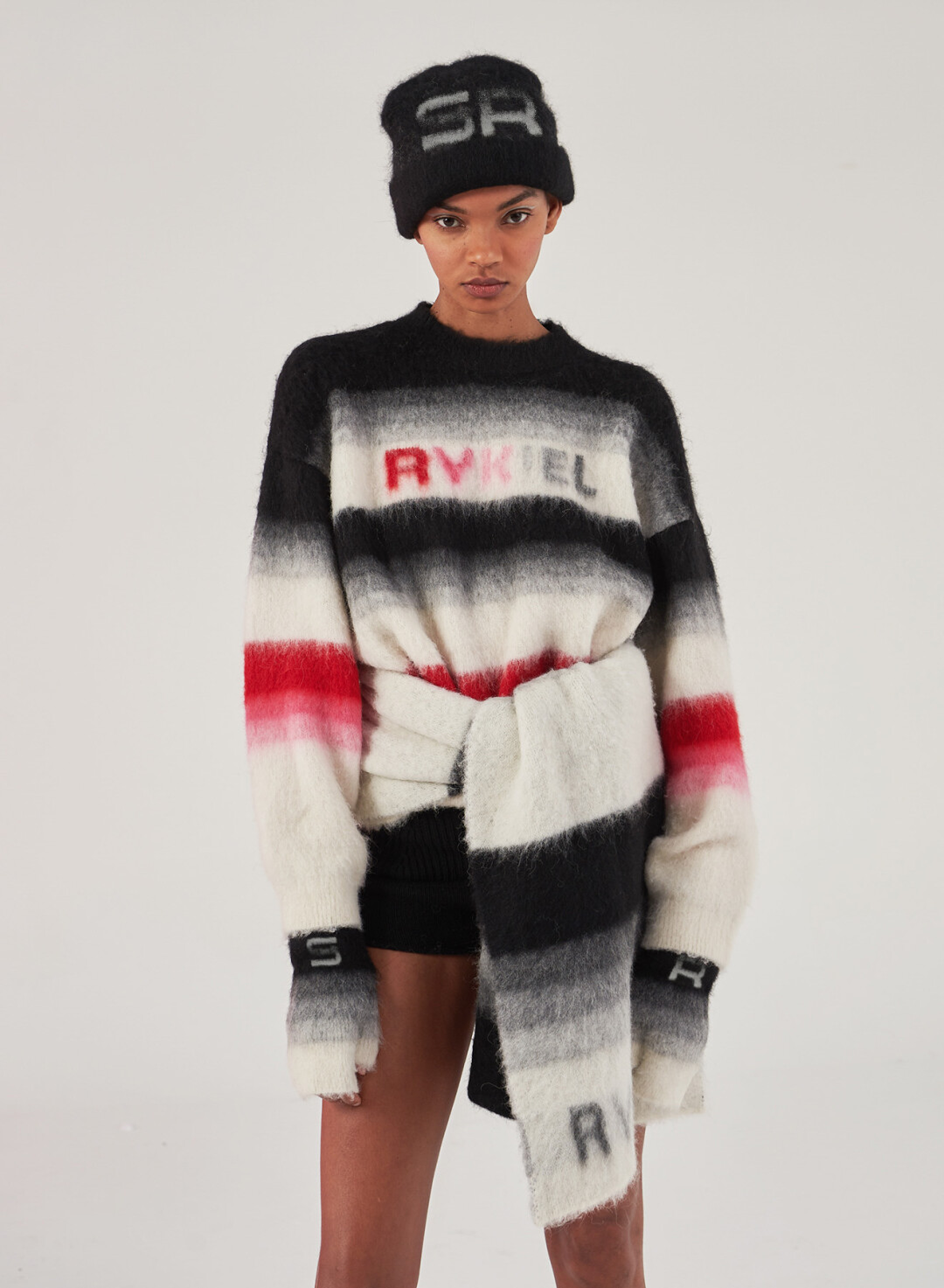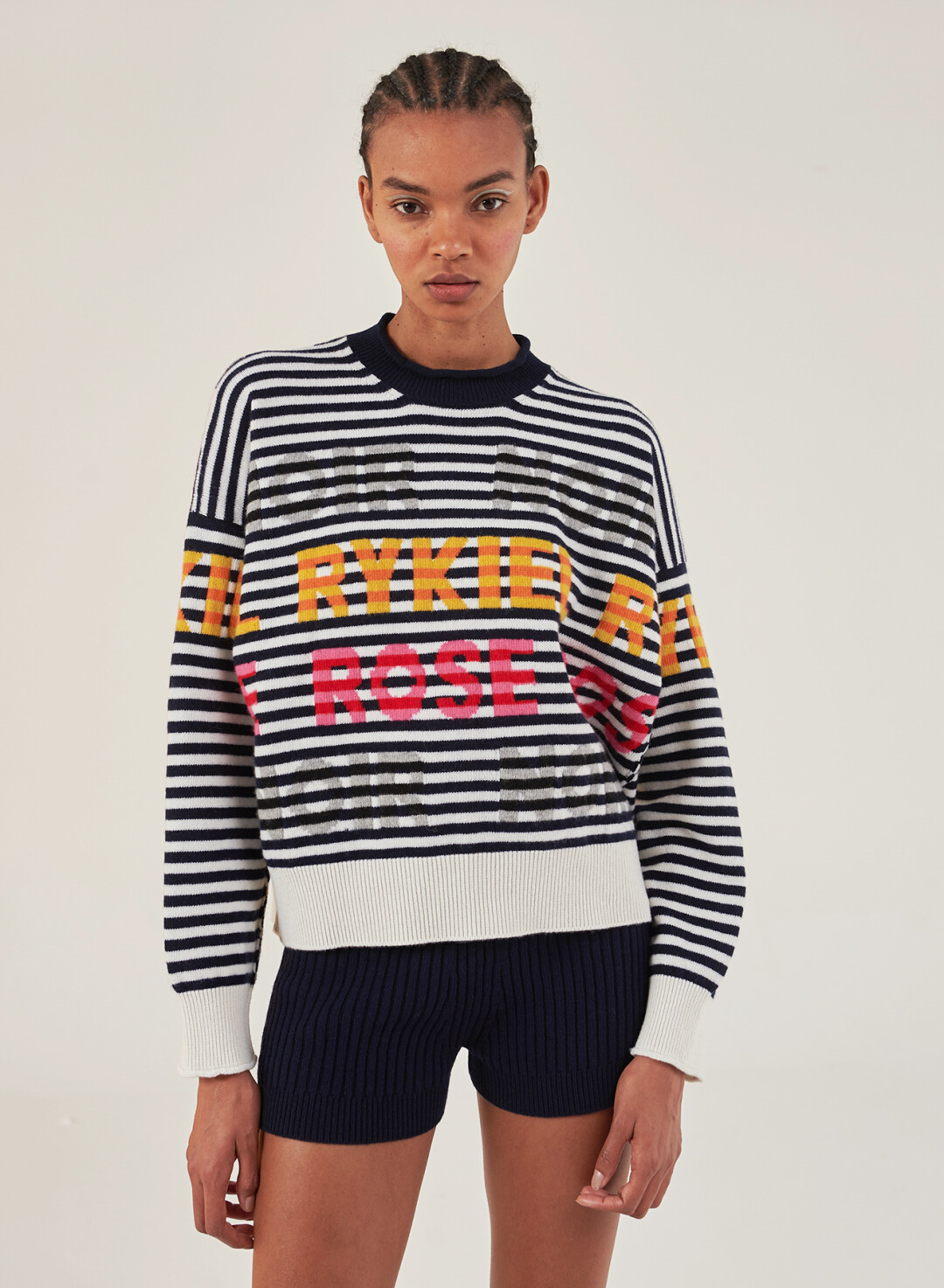 В коллекцию Sonia Rykiel осень-зима 2021/22 вошли знаковые для бренда трикотажные вещи: свитеры, шапки, шарфы и даже шорты, украшенные аутентичными и традиционными принтами марки.