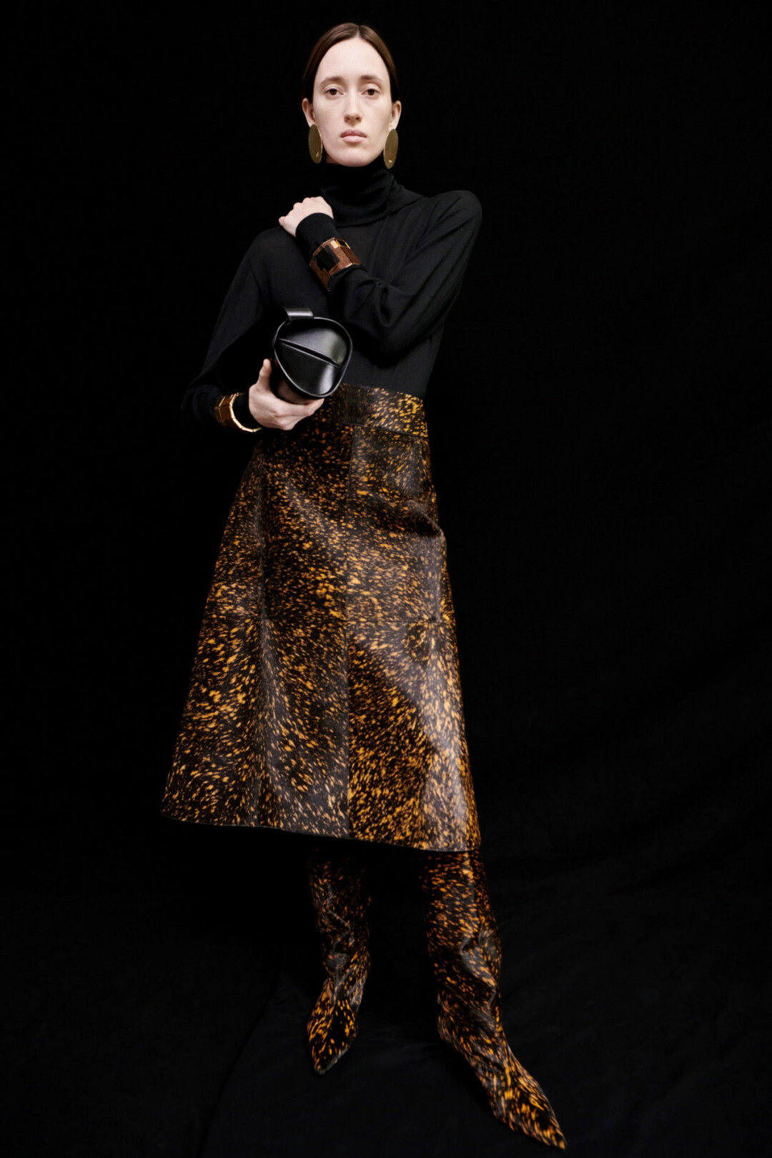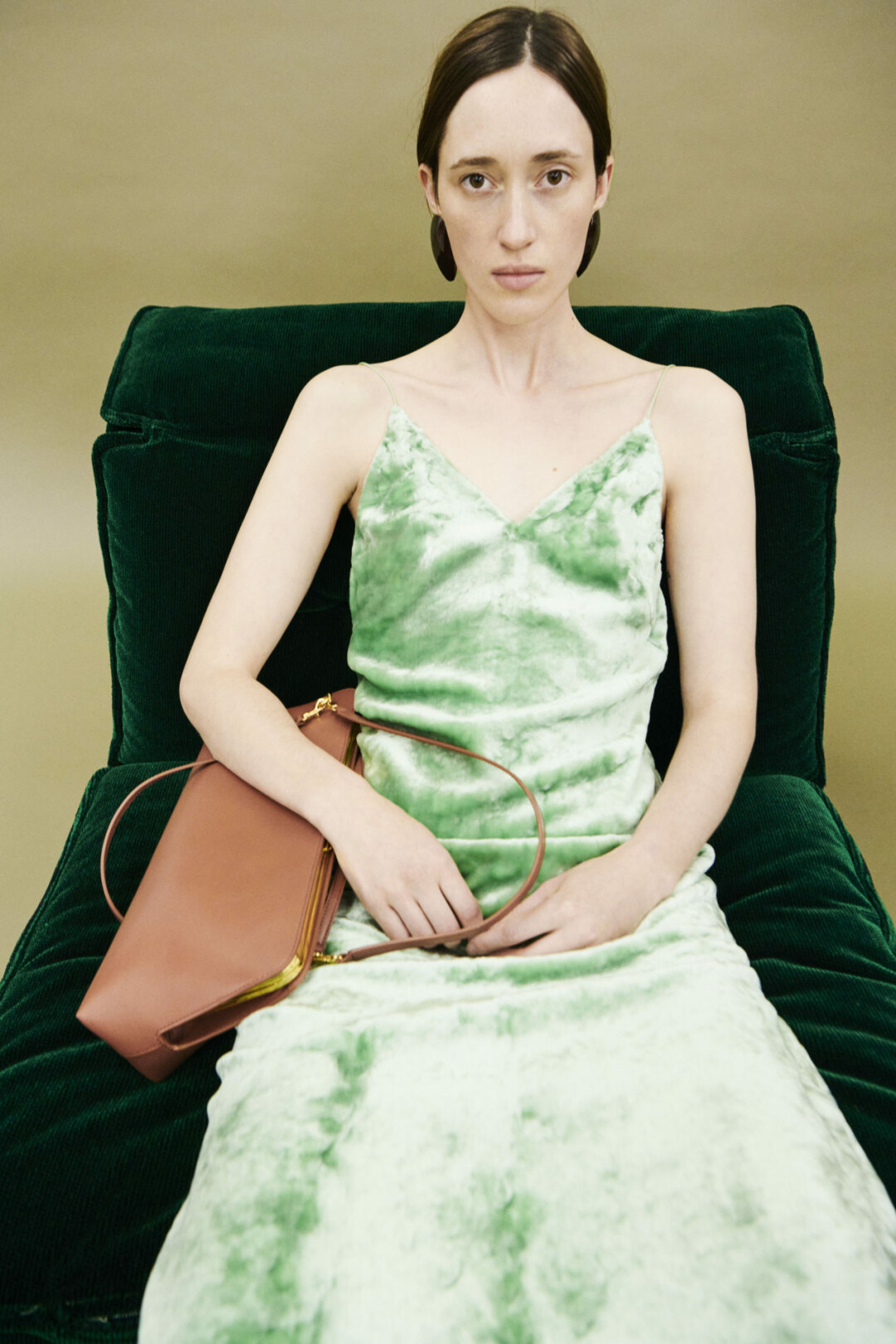 В коллекцию вошли бархатные комбинезоны, платья и костюмы, плюшевый удлиненный жилет и плюшевые высокие сапоги, лакированная юбка и плащ с анималистичным принтом, жакеты, тренчи и пальто разных оттенков: от лимонного до небесно-голубого, а также вещи, украшенные плетением. Кроме того, Люси и Люк Мейер поэкспериментировали с формой мыса обуви, показав варианты от гипертрофированно узкого и удлиненного до максимально квадратного. Большинство вещей выполнены не в привычных для минималистов черном и белом цветах, а в насыщенной яркой палитре: разные оттенки желтого, синего, зеленого.