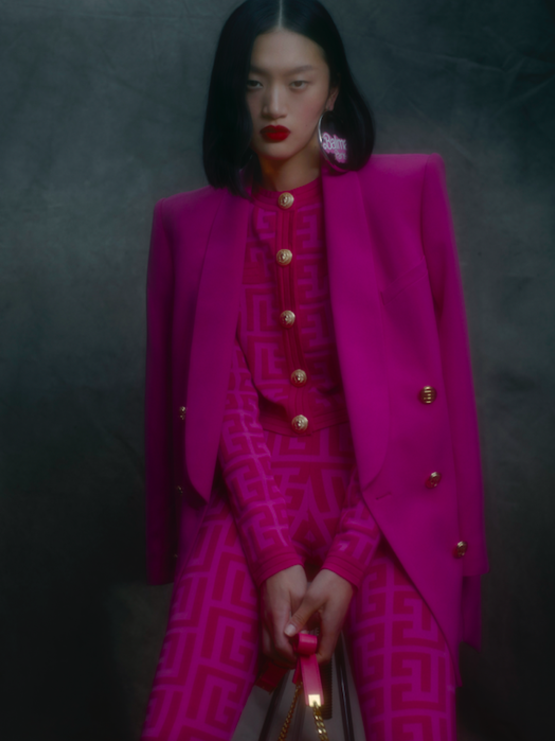 Главный цвет коллаборации, конечно, розовый, — символ Barbie. Среди его оттенков и интерпретаций варианты от пастельных до фуксии. Креативный директор Balmain Оливье Рустен поработал со всей айдентикой бренда кукол, результат — футболки, толстовки, спортивные костюмы с логотипами Balmain, а также бейсболки, кеды, ботильоны и ботинки. Кроме того, в коллекции есть и узнаваемые вещи модного дома, например, классические двубортные костюмы и платья с острыми плечами.
