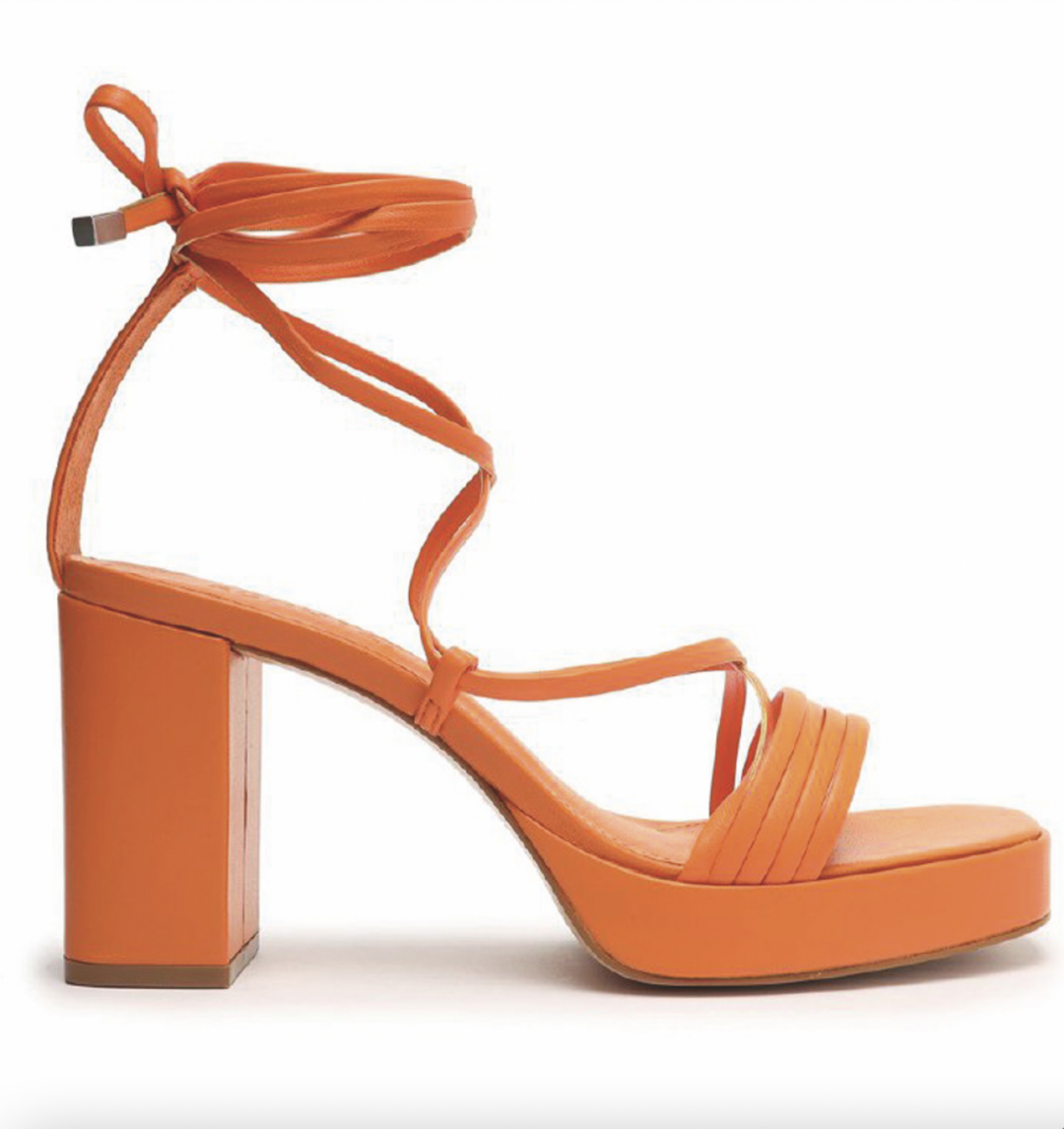 Платформы вернулись! И вот вполне себя изящная пара с оранжевыми лентами от классного бразильского бренда.