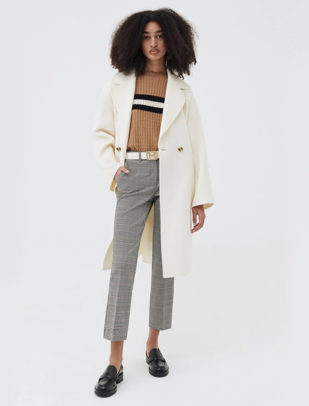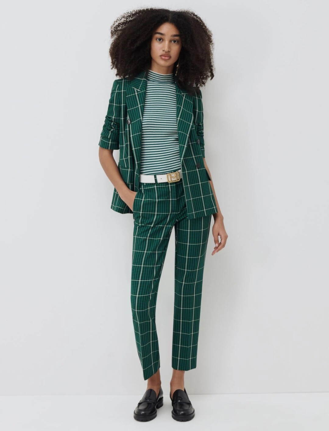 Что касается принтов и оттенков, то тут на первый план выходят клетка различных калибров и вариаций — от крупных квадратов до мелкой «ломаной» клетки (она же «гусиная лапка») — и насыщенный изумруд как способ плавного визуального перехода от летней листвы к хвое рождественских елок. Любители классических цветов тоже останутся довольны: бежевый, сливочный, camel, черный и белый — в изобилии.
