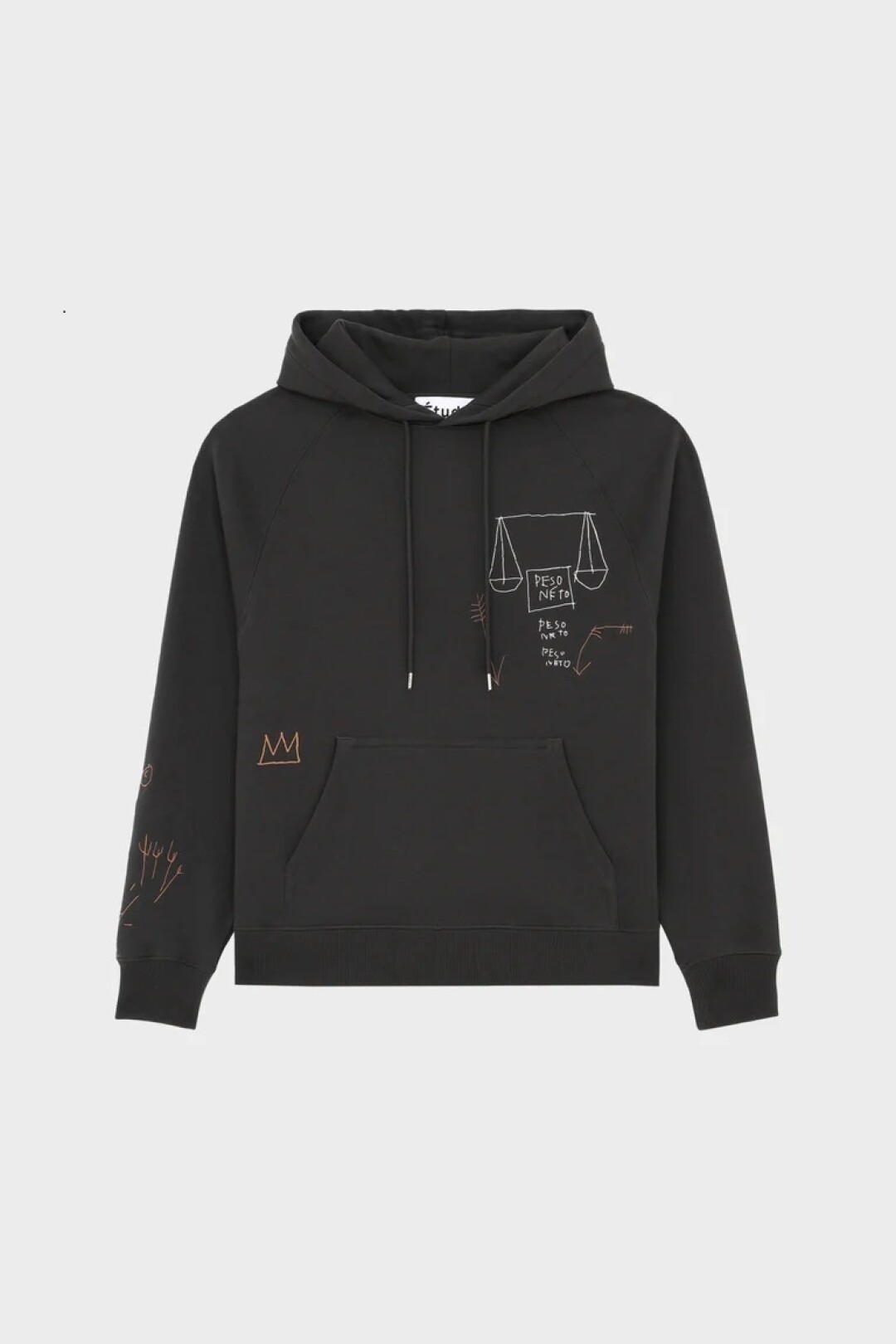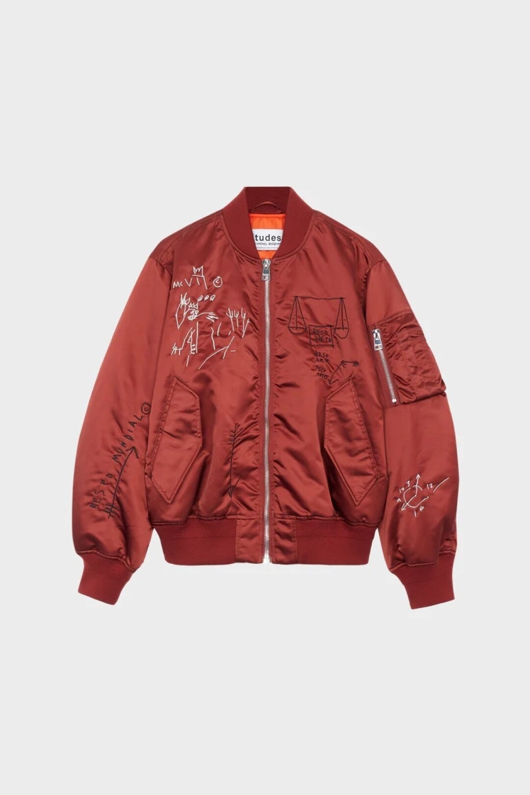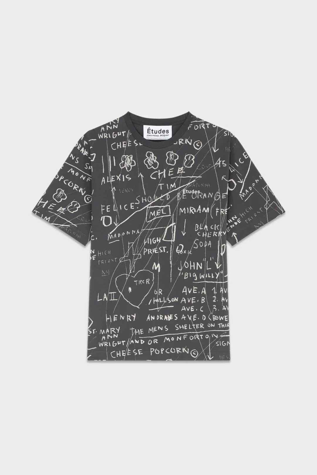 В этом году в честь юбилея бренда вышла коллекция Études Х Jean-Michel Basquiat, в Петербурге она продается в универмаге Au Pont Rouge. Жан-Мишель Баския — американский художник-неоэкспрессионист. Баския покрывал рисунками любой предмет, попадавшийся ему под руку: холодильник, бейсбольный шлем, дверцы книжного шкафа или костюмы Armani, которые появились в его гардеробе с первыми большими гонорарами. Так рождались всемирно известные произведения искусства. «Всего за 9 лет активного творчества он оставил нам такое наследие, которого иные художники не могут создать за всю свою жизнь», — говорил арт-дилер Тони Шафрази. В коллаборации с Études семнадцать работ Баския представлены в виде вышитых принтов, трафаретной печати, нашивок и эскизов. Сочетание элегантной верхней одежды, спортивной эстетики и эффектных аксессуаров — так выглядит современный фэшн-неоэкспрессионизм.