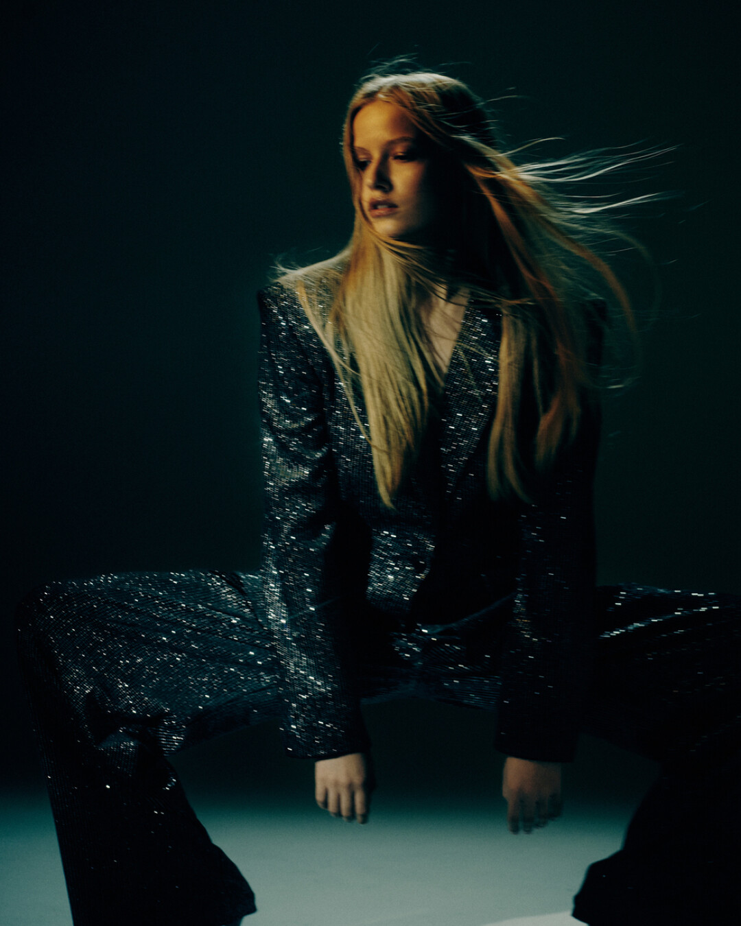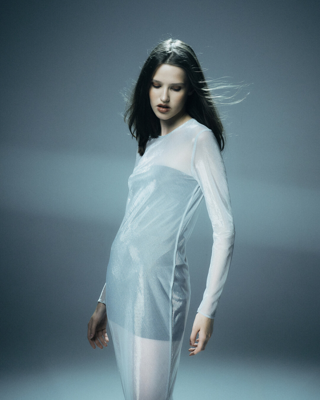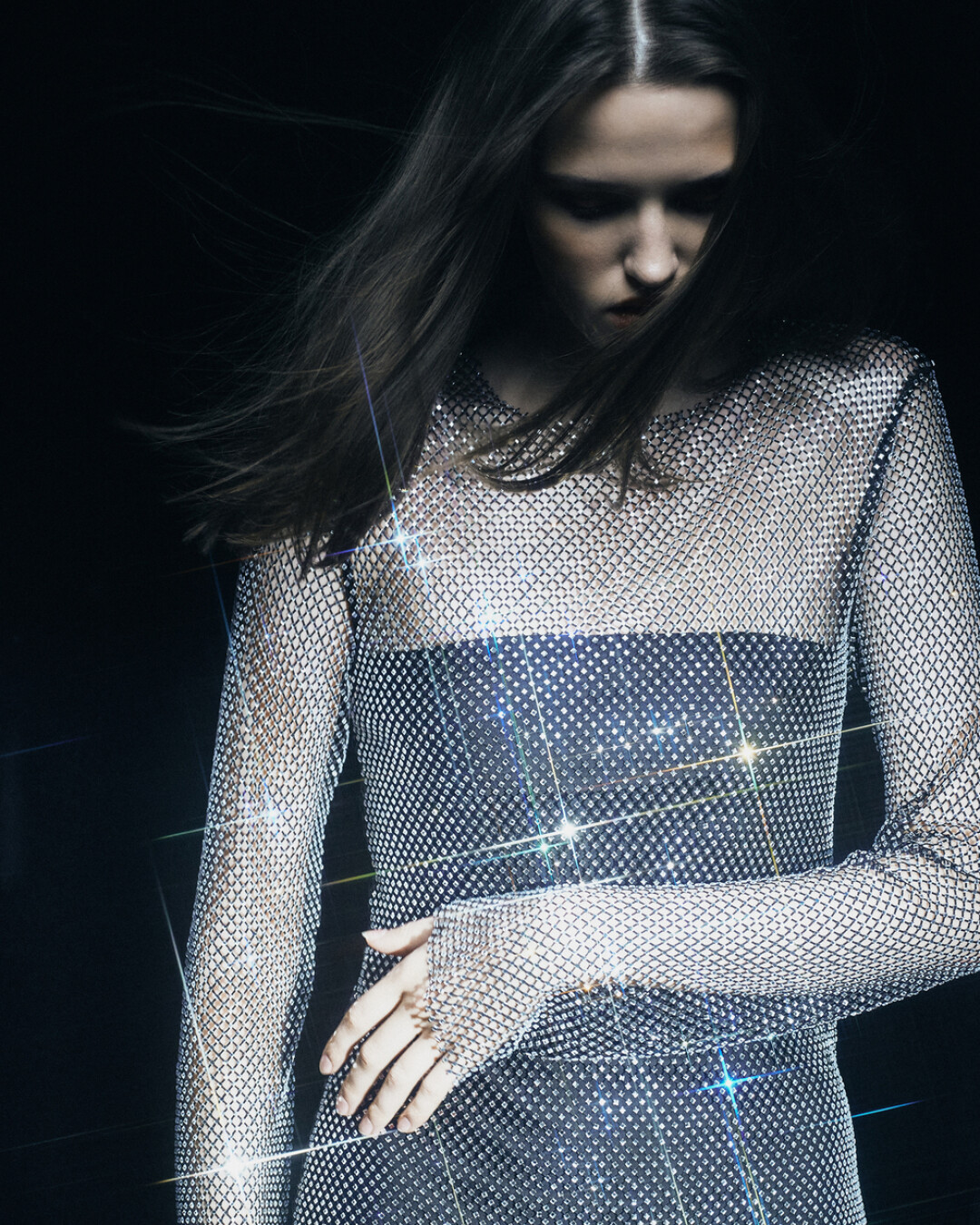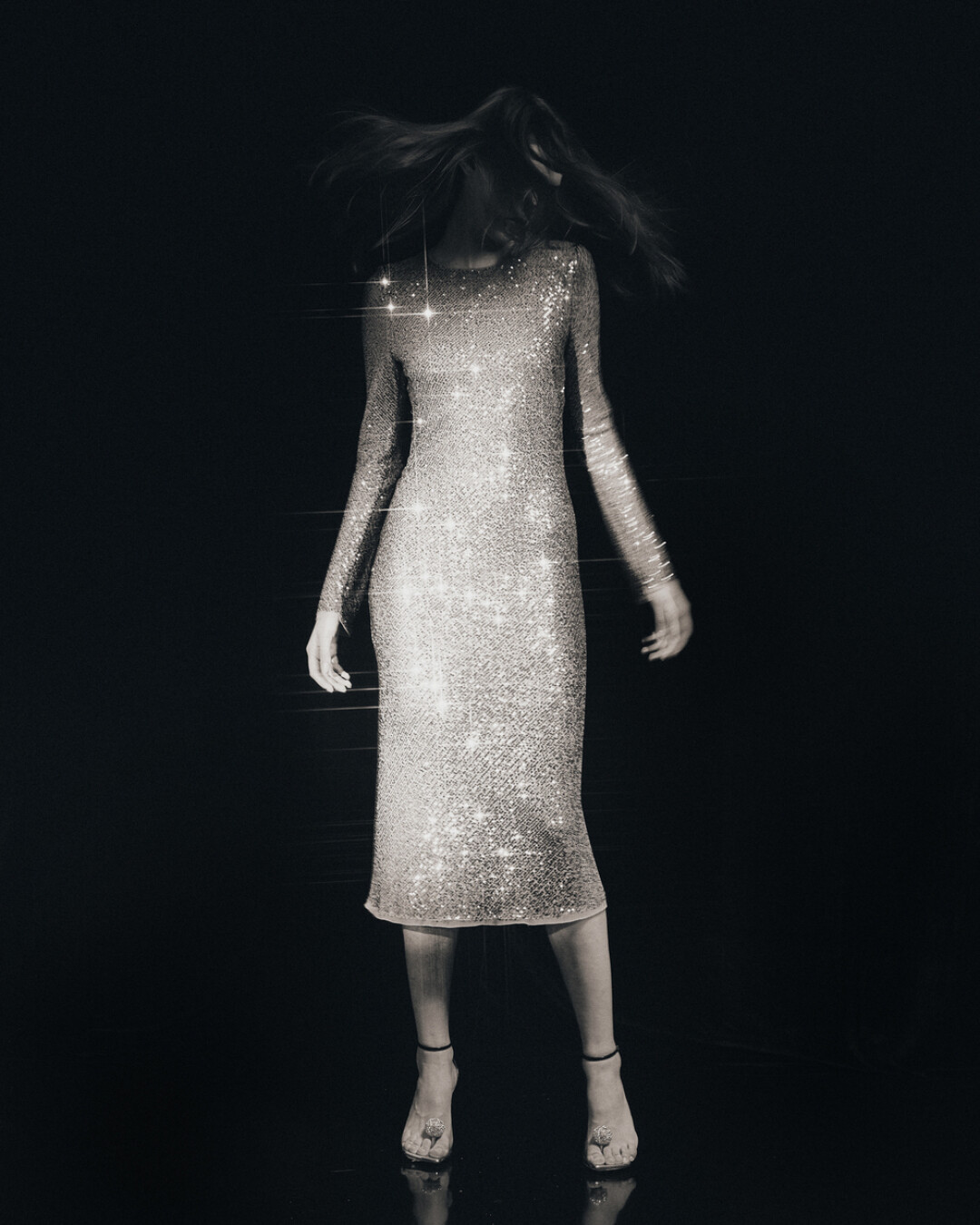 Фирменные для бренда брючные костюмы в коллекции тоже есть, но в более нарядном виде. Смокинги выполнены из лимитированных материалов: мягкого бархата с принтом и итальянского вискозного сатина, создающего эффект лунного сияния. Альтернативой классическим брюкам становятся мини-шорты в тон плечистым полуприталенным жакетам. Фанатов блейзеров ждет по-настоящему особенная модель — из итальянской облегченной шерсти, с открытой спиной. В капсуле также представлены полупрозрачные струящиеся комбинации вроде тех, что в 90-е носила на вечеринки Кейт Мосс, корсетное мини с юбкой-колоколом, которая держит форму за счет хитрой конструкции, платья из материалов, напоминающих расплавленный металл, и блузы с пышными рукавами из матового шелка.