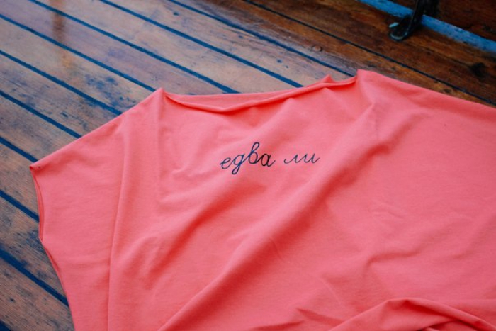 Запоминающихся лукбуков марка Aloe не снимает, зато покрывает базовые вещи красивыми каллиграфическими надписями. Слова «лососи», «виайпи», «абсурд», «взбеленился», «вертеп» и «чаща» не несут смысловой нагрузки, зато хорошо смотрятся на простых платьях, лонгсливах и майках. Цены — от 950 рублей за футболку до 1700 за платье из теплого хлопка.