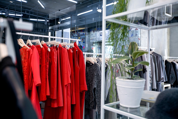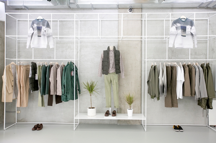 С корейскими марками соседствуют вещи отечественных дизайнеров: пальто So Number One с адекватным ценником, парки Sh’u (около 4 000 рублей), кожаные юбки Vazovsky (около 5 000 рублей), платья I am Studio и LN Family.