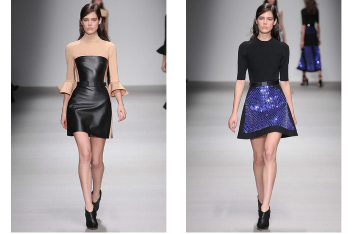 Молодой дизайнер из Петербурга, год назад сменивший на посту креативного директора Mugler Николу Формикетти, помимо коллекций для французского дома продолжает заниматься собственным брендом. В новом сезоне Давид показал нежные вещи, неожиданные для марки: в ход пошли юбки в глиттере, блузы с рукавами-клеш и мини-юбки с оборками. Впрочем, не обошлось и без традиционных для Комы вещей — минималистичных воинственных платьев и комбинезонов, напоминающие о доспехах.