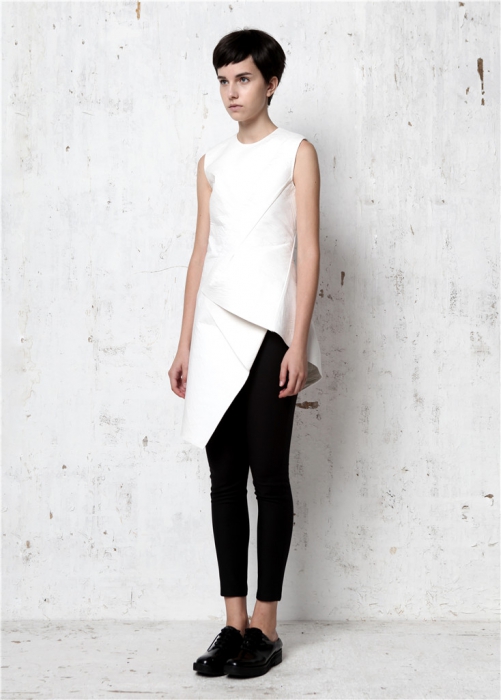 Цветовая палитра: черный и белый цвета, дополненные красным, бронзовым, светло-розовым, мятно-зеленым, серым. Ткани: смесовые материалы, поплин, органза, лен.